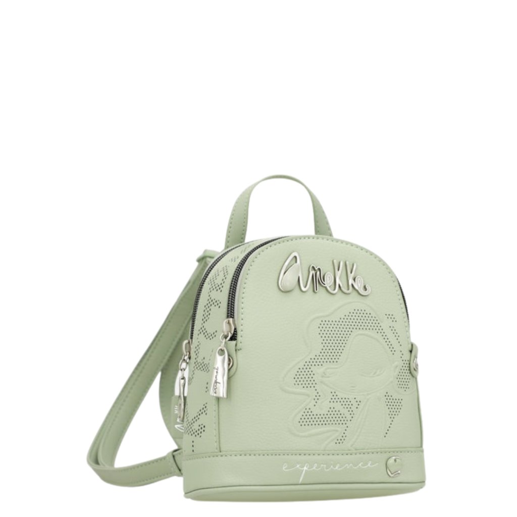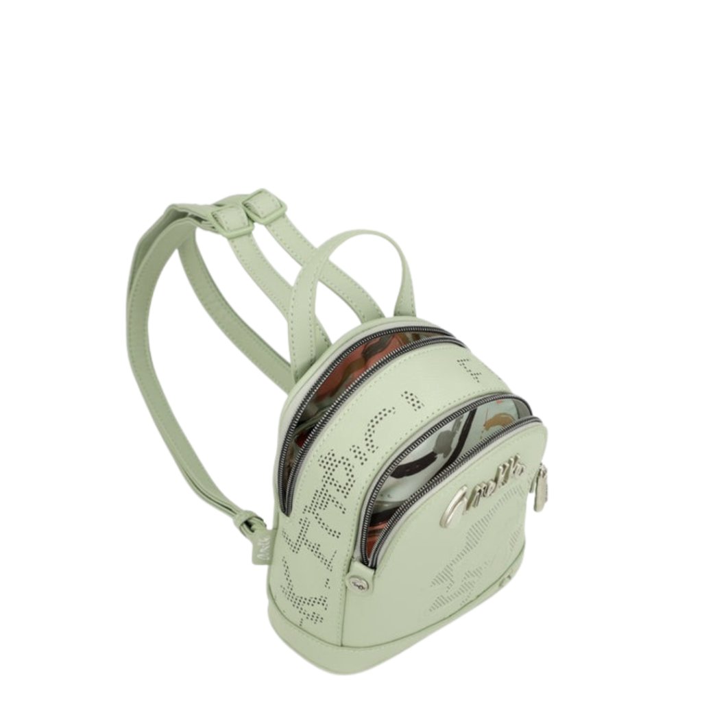 Ez egy kisméretű hátizsák két különálló rekesszel és egy hátsó zsebbel. A hátizsák két állítható pánttal és egy kézben hordható füllel rendelkezik. A belső része bélelt, és zsebeket találsz benne. Az utolsó simítások azok a részletek, amelyek egyedivé teszik.