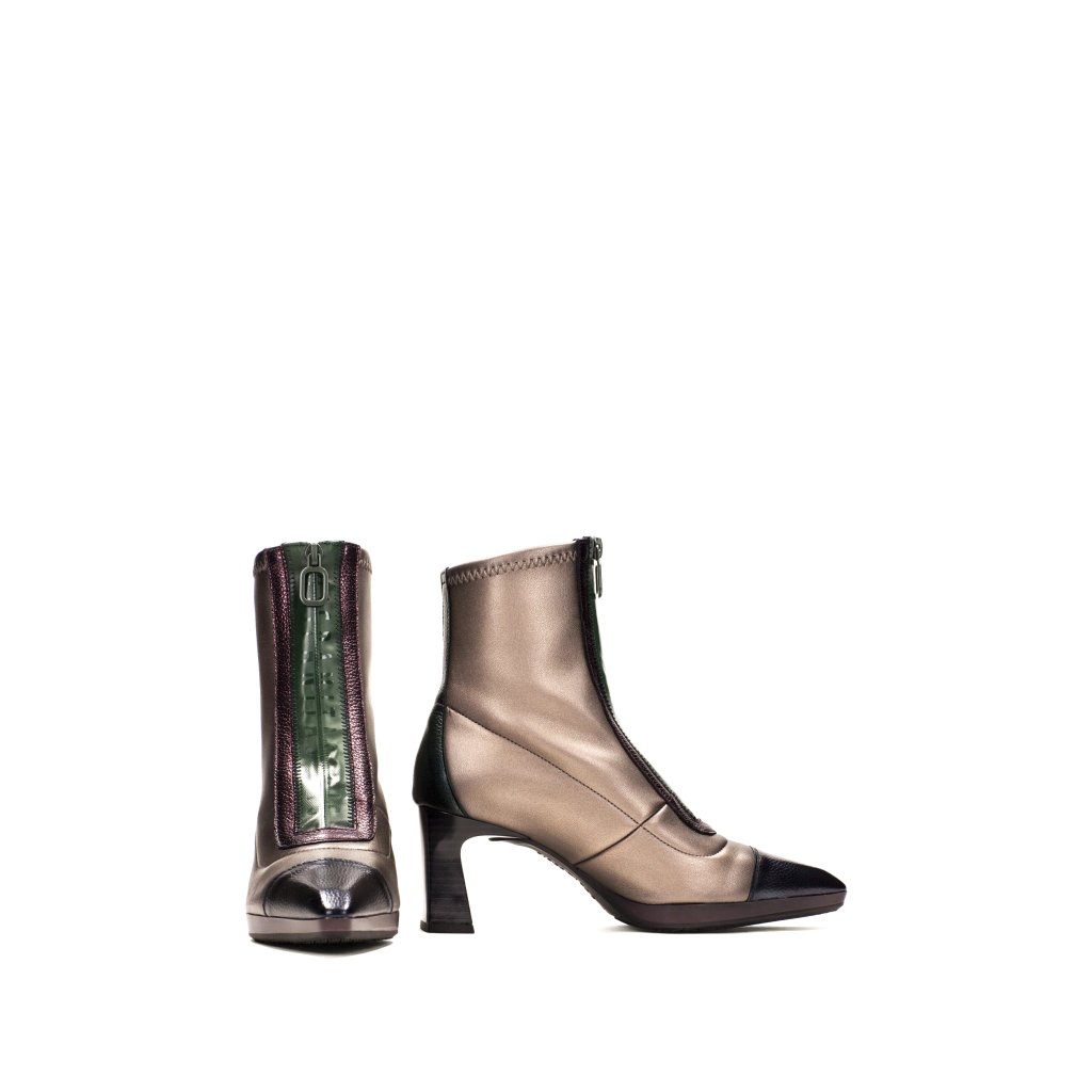 Cipő hegyes orrú, 7 cm-es hajlított sarokkal. Stretch kialakítás, amely lehetővé teszi a tökéletes bokailleszkedést bőr részletekkel kombinálva. Vízálló cipzárral rendelkezik a márka logójával és a Triflow technológiával.