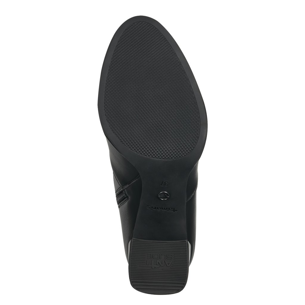 Merüljön el az elegancia világában ezzel a bokacsizmával Tamaris. A 7,6 cm-es blokk sarok lenyűgöző magasságot és nőies sziluettet biztosít. A kiváló minőségű szintetikus anyagból készült felsőrész egy kis luxust sugároz. Az innovatív TOUCH-IT technológiának köszönhetően egész nap kényelmes érzést fogsz tapasztalni. Az ANTIslide és ANTIshokk funkciók optimális tapadást és párnázottságot biztosítanak minden lépésnél. Akár az irodában, akár különleges alkalmakra, ezek a bokacsizmák stílusukkal és kényelmükkel örvendeztetik meg Önt. Valósítsa meg cipős álmait a Tamaris segítségével.