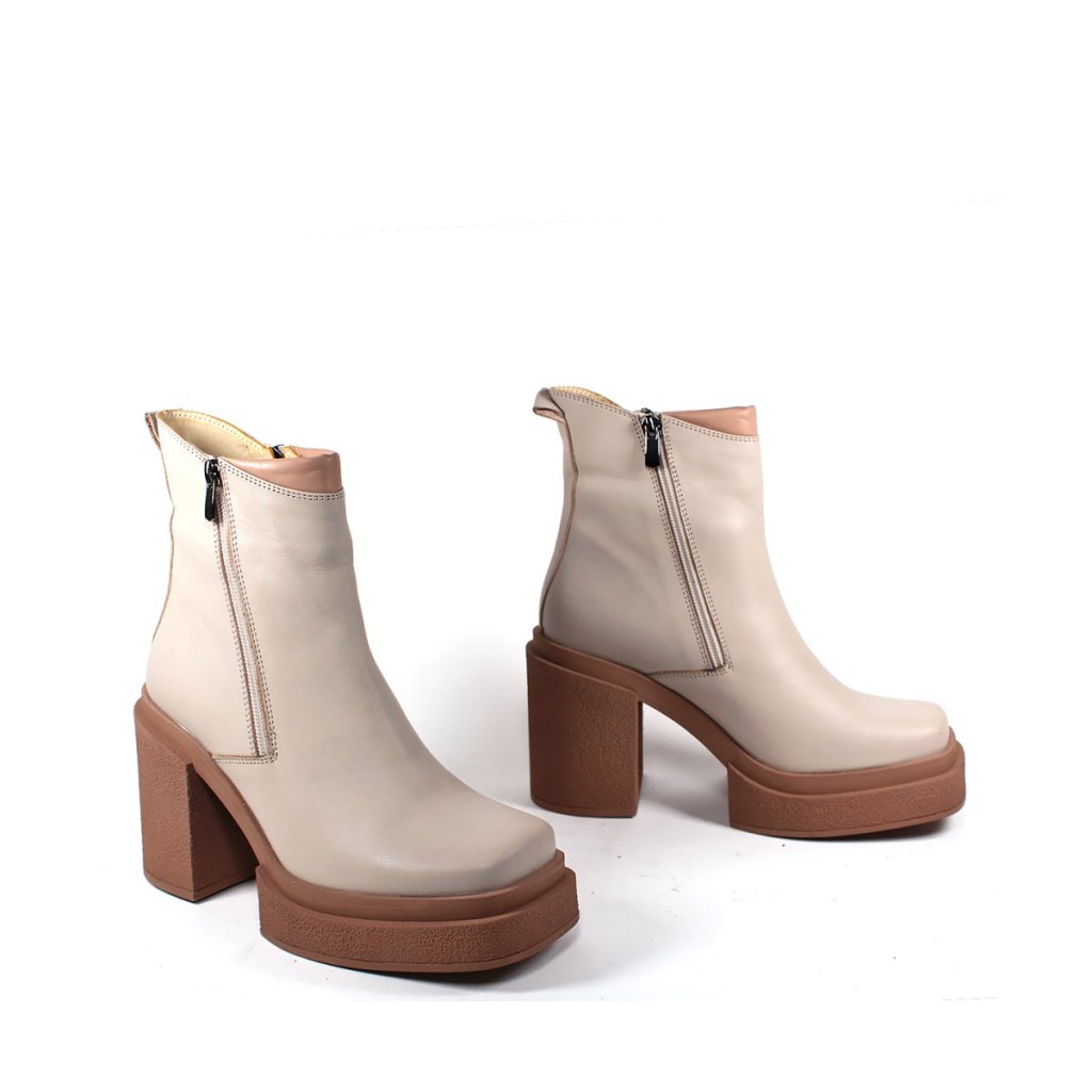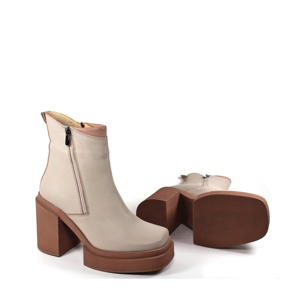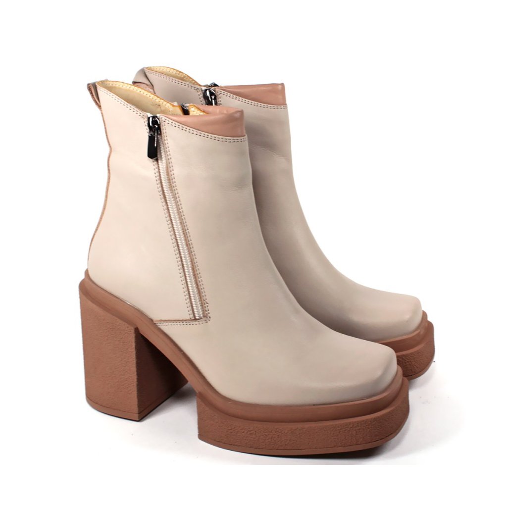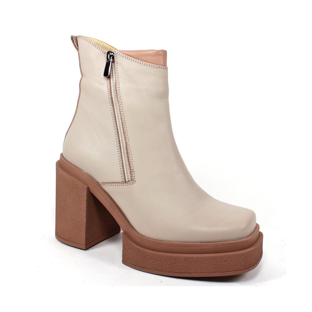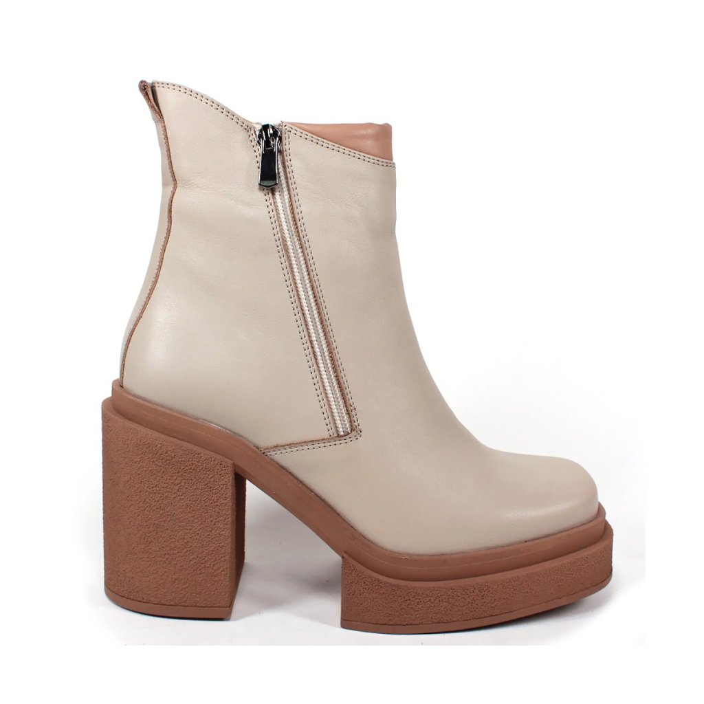 Stílusos bokacsizma valódi bőrből, magasabb, vastag sarokkal, amelyben egyszerre érzi magát divatosnak és kényelmesnek. Sarokmagasság: 9 cm Szín: bézs Szezon: ősz/tél Lábujj forma: kerek Felső anyag: bőr Bélés anyaga: textil Talp anyaga: szintetikus
