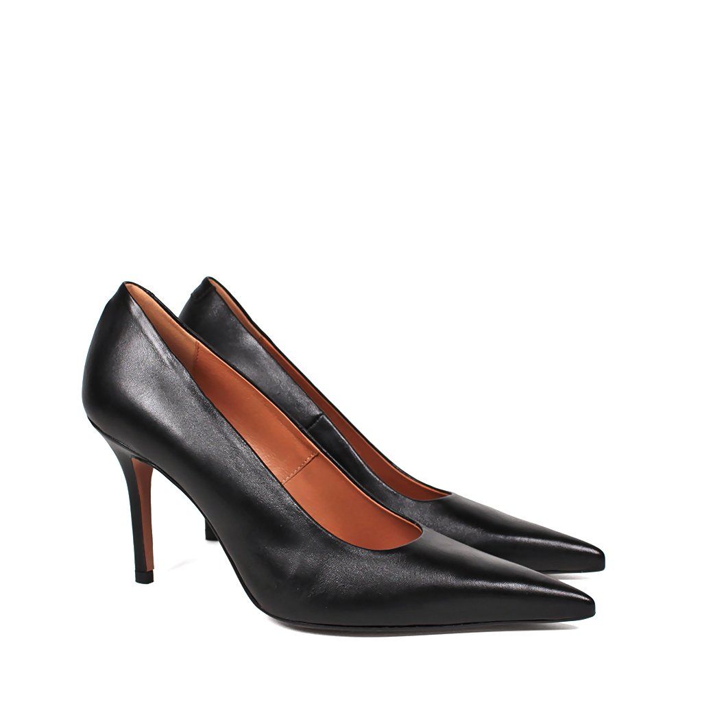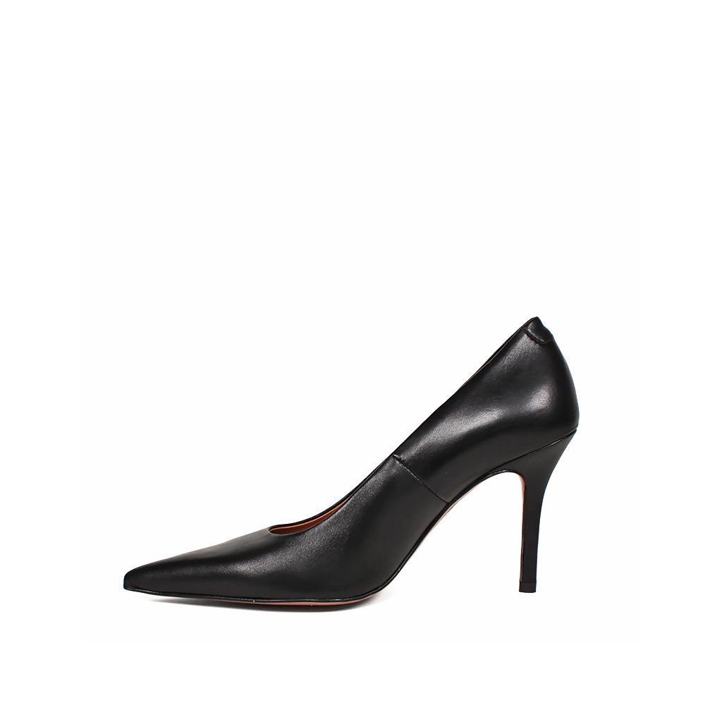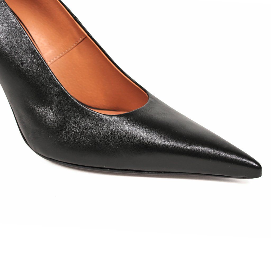 Sarok: A 9,5 cm magas, vékony tűsarok optikailag meghosszabbítja az alakot és kecsessé teszi a járást.