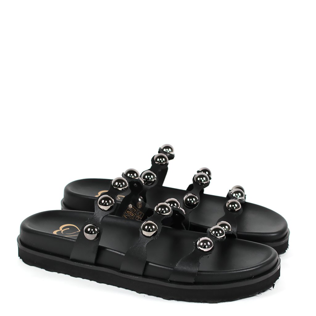 A Secretshoes női bőr papucsok az elegancia, a kényelem és a markáns stílus elegáns kombinációját képviselik. A természetes bőr talpbetét egész napos kényelmet biztosít, míg a bőr pántok friss és modern megjelenést kölcsönöznek. A domináns elem a luxus gyöngyök, amelyek egyedi és kifinomult jelleget kölcsönöznek a papucsoknak. Ideális azoknak a nőknek, akik a kényelmet az exkluzív dizájnnal szeretnék ötvözni, és egy csipetnyi eredetiséget szeretnének adni nyári öltözékükhöz.