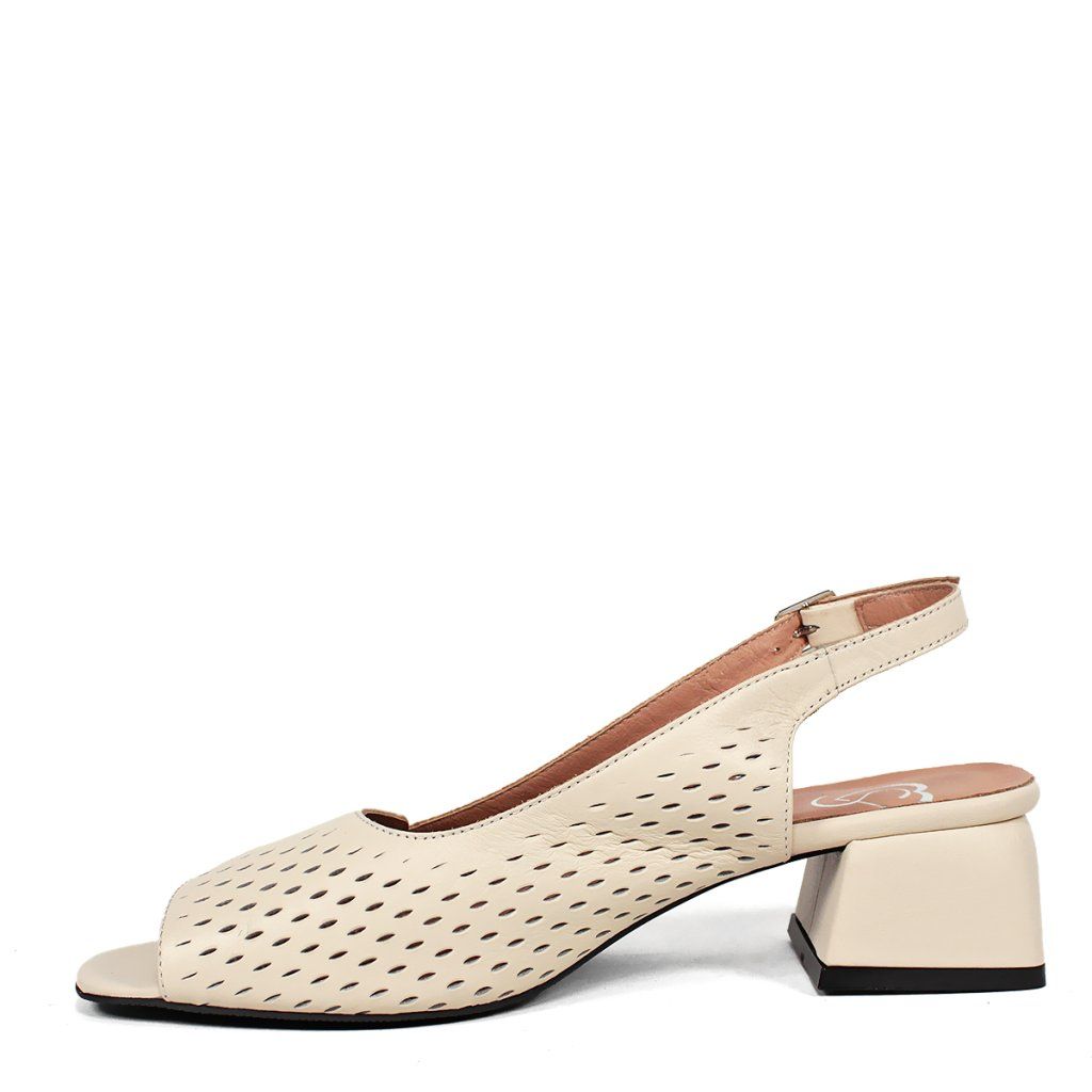 Ez az elegáns bézs női szandál a Secretshoes márkától a kifinomult stílus és a mindennapi kényelem tökéletes kombinációját kínálja. A cipő egyedisége a precíz, lézerrel vágott mintázatban rejlik, amely nemcsak modern megjelenést kölcsönöz, hanem kiváló légáteresztő képességet is biztosít a melegebb napokon. A stabil, közepes magasságú tömbsarok és a nyitott orr magabiztos járást garantál, míg az állítható csatos pánt optimális tartást biztosít a boka körül. Ideális választás irodába vagy elegánsabb alkalmakra, ahol a kényelem nem mehet a stílus rovására.