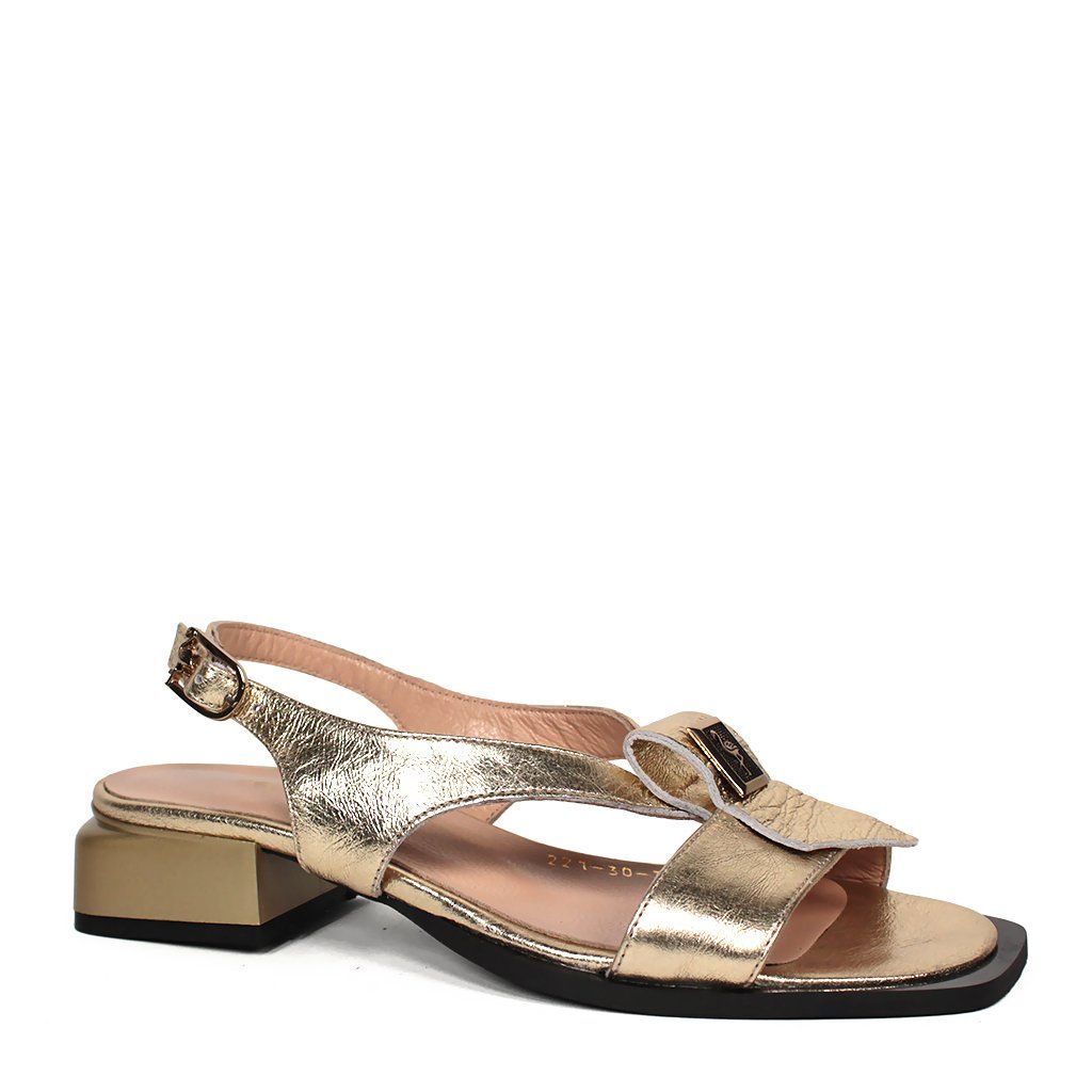 Dobd fel nyári ruhatáradat az elegáns Secretshoes szandálokkal. Ez a modell metál arany kivitelben valódi bőrből készült, amely kiemelkedik puhaságával és fényűző megjelenésével. A stabil 2,5 cm-es blokk sarok és az állítható sarokpánt biztosítja a biztonságos és kényelmes lépést egész nap.