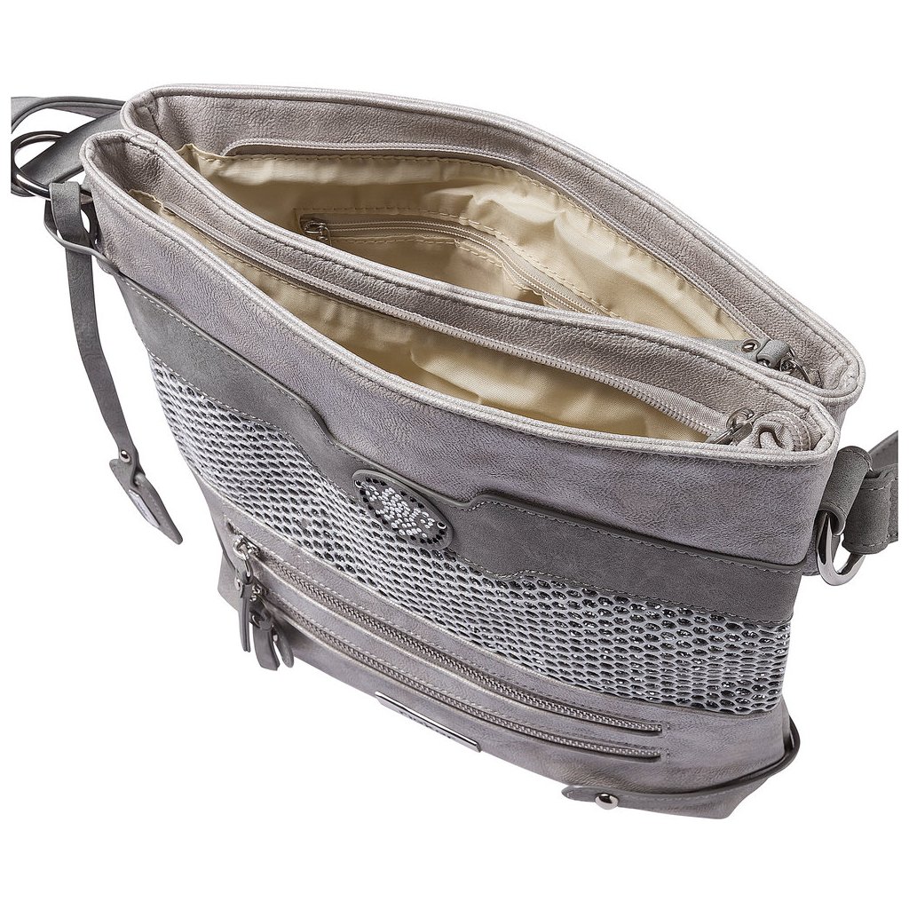Hagyja, hogy kényeztesse magát ez a különleges Rieker márkájú táska. A fő rekesz cipzárral két részre oszlik, az egyik részben egy kis zseb, a másik részben két kis zseb található. A táska három további kis cipzáras zsebbel rendelkezik, kettő az elején, egy a hátulján. A tárolóhelyek praktikus elrendezése tökéletes rendszerezést biztosít holmijának. A táska hosszú, állítható vállpánttal rendelkezik, amely nem levehető. Nagyszerű kiegészítője ruházatának, akár munkába, akár városi sétára.
