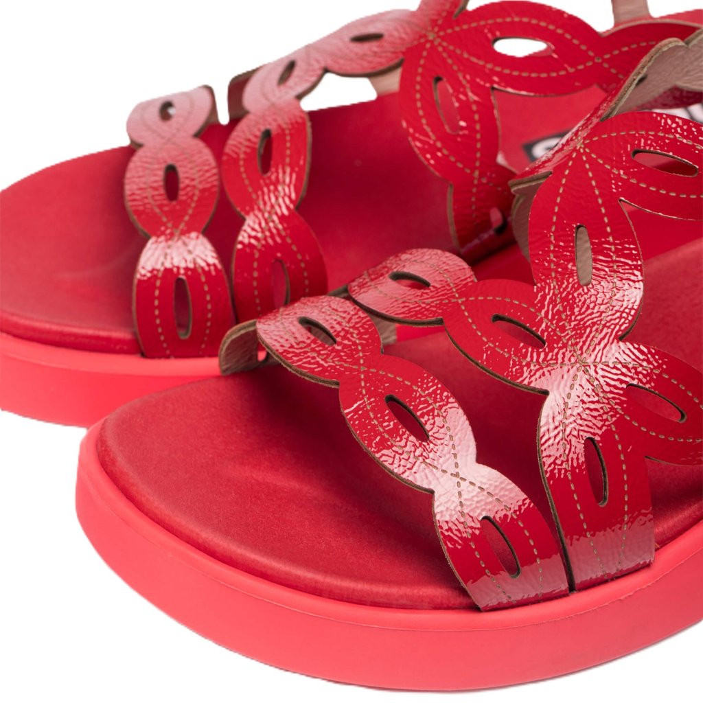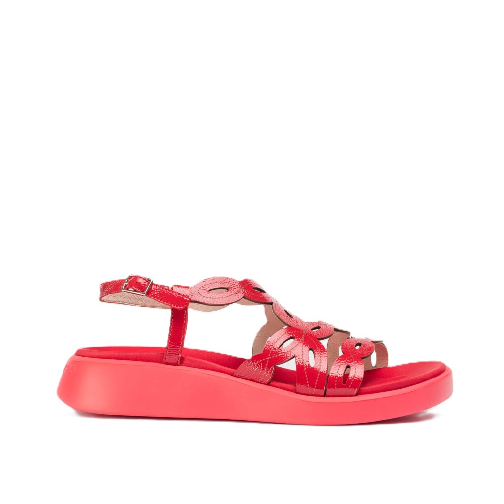 Szandálok a híres és népszerű spanyol márkától Wonders a legújabb kollekcióból. Külső anyaga természetes bőrből készült, klasszikus piros árnyalatban. A modell csatos rögzítéssel rendelkezik, amely lehetővé teszi a gyors és egyszerű fel- és levételt. A szandál talpbetétjének gyártásához a gyártó természetes bőrt is használt, amely kényelmet és komfortot biztosít számunkra az egész napos használat során. Tartós, kopásálló műanyagból készült talp.