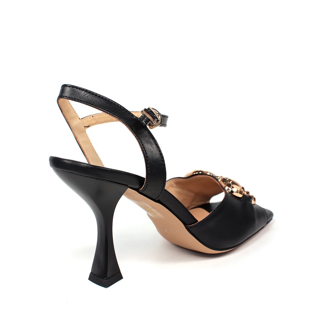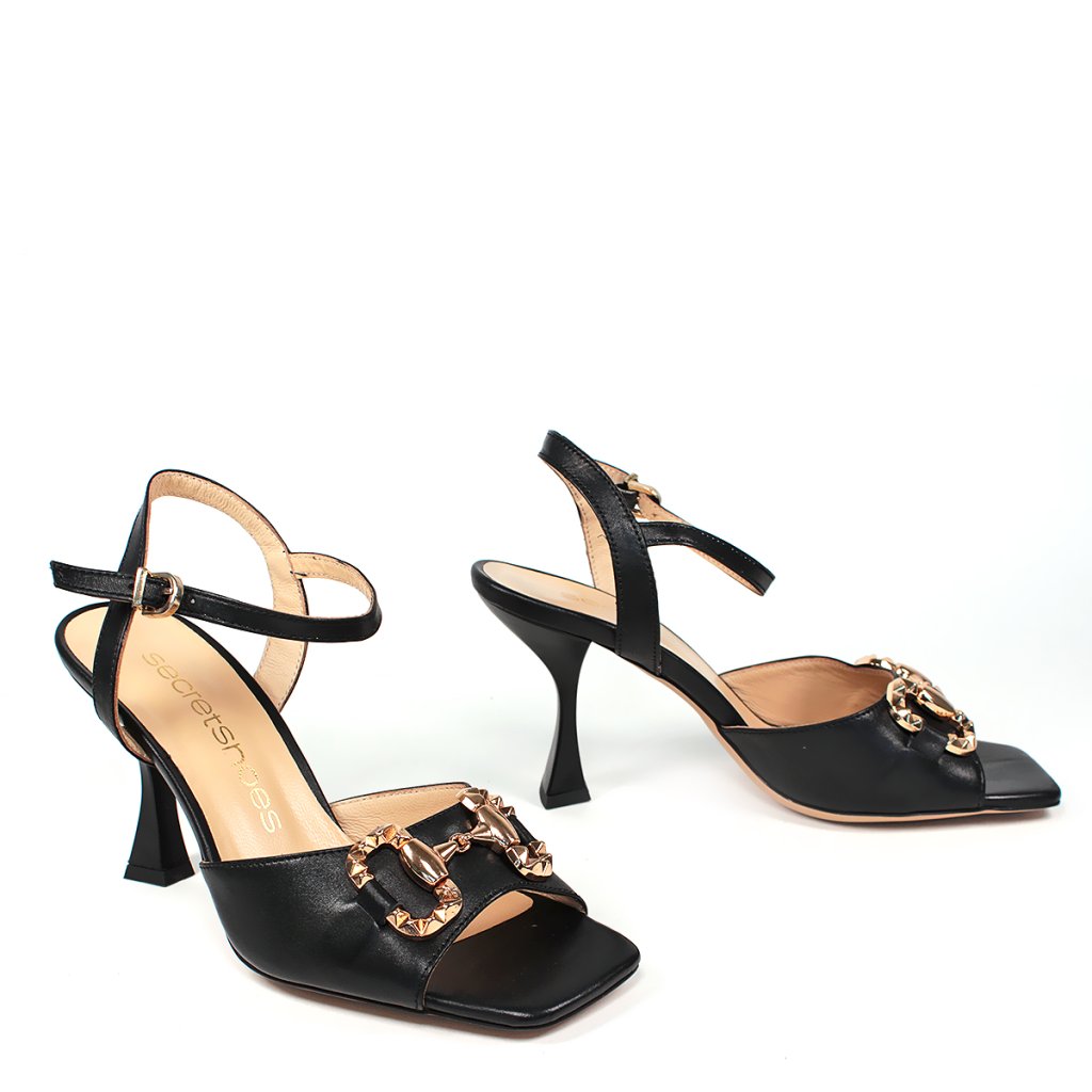 Elegáns bőr szandál SECRETSHOES elegáns sarokkal, díszítéssel, partycipőnek is alkalmas.