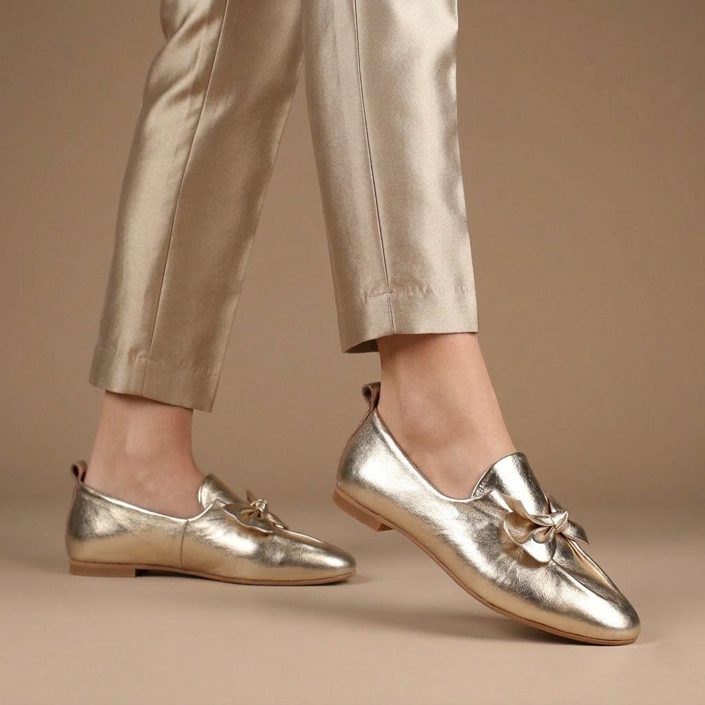 Élénkítse ruhatárát ezekkel a bájos félcipőkkel, amelyek a lányos finomságot luxus metál megjelenéssel ötvözik. Valódi bőrből készült, minden lépésnél puhaságot és légáteresztő képességet biztosítanak.