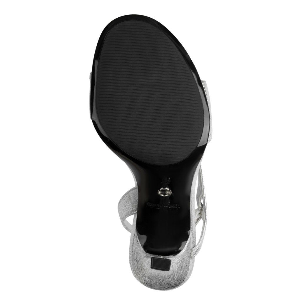 A magabiztos fellépésről az ízléses, magas tűsarok gondoskodik, amely elegánsan nyújtja meg a sziluettet. A maximális kényelem érdekében a modell puha Touch-it talpbetéttel van ellátva, amely alkalmazkodik a láb egyéni formájához, így a szandál még hosszabb rendezvények során is kényelmes marad. A vékony, állítható csattal ellátott bokapánt segítségével a szandál precízen a lábhoz igazítható. Ez a darab ideális választás estélyi ruhákhoz, koktélpartikhoz vagy bármilyen eseményhez, ahol a cél egy felejthetetlen és ragyogó megjelenés.