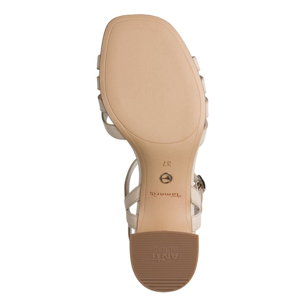 Ez a Tamaris prémium modellje, bézs valódi bőrből készült, tökéletes ötvözete a klasszikus stílusnak és a modern kényelemnek. Az elegánsan formázott zárt orr a nyitott sarokkal kombinálva kifinomult megjelenést kölcsönöz a cipőnek, míg az alacsony sarok természetes és magabiztos lépést biztosít egész nap. Ennek a modellnek a kivételességét a dupla pántok hangsúlyozzák, feltűnő ezüst csatokkal és dekoratív fémvégekkel, amelyek luxus hangulatot kölcsönöznek a cipőknek.