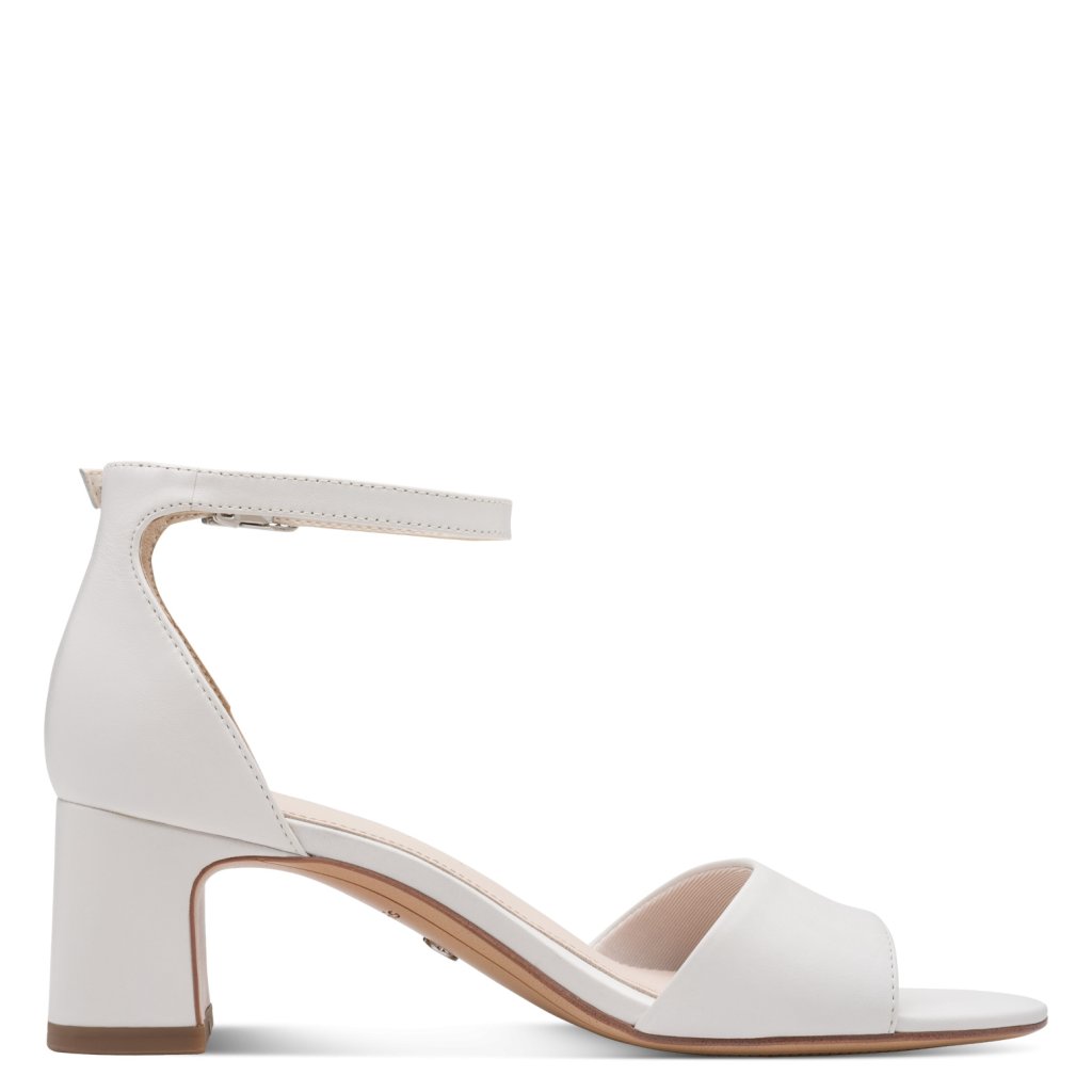 Ezek a hófehér Tamaris szandálok a nyári elegancia kvintesszenciái, amelyek frissességet és kifinomultságot kölcsönöznek minden megjelenésnek. A felsőrész prémium valódi bőrből készült, amely nemcsak elegáns megjelenést biztosít, hanem rendkívüli tartósságot és kényelmes, légáteresztő viseletet garantál a legforróbb napokon is. A fehér bőr természetes fénye és finom érintése kiemeli a cipő minőségi kidolgozását.