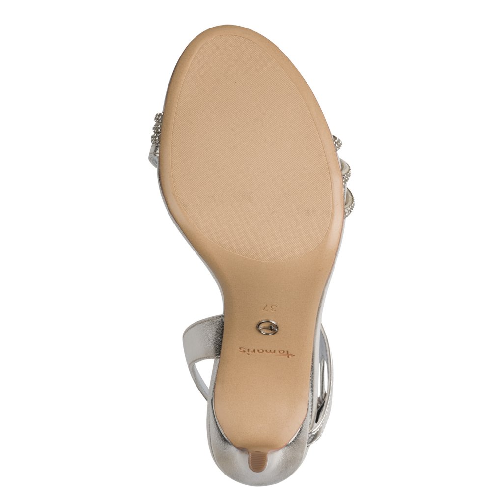 A Tamaris Touch-it technológia gondoskodik a kényelemről is: a puha talpbetét folyamatosan alkalmazkodik a láb formájához, így magas sarok ellenére is kényelmes viseletet biztosít. A stabil sarokkonstrukció és a finom, ezüst csattal ellátott bokapánt biztonságos tartást és bájos megjelenést garantál. Akár elegáns ruhához, akár sikkes nadrágkosztümhöz veszi fel őket, ezek a metál ezüst szandálok garantáltan ruhatára ékességét fogják képezni.