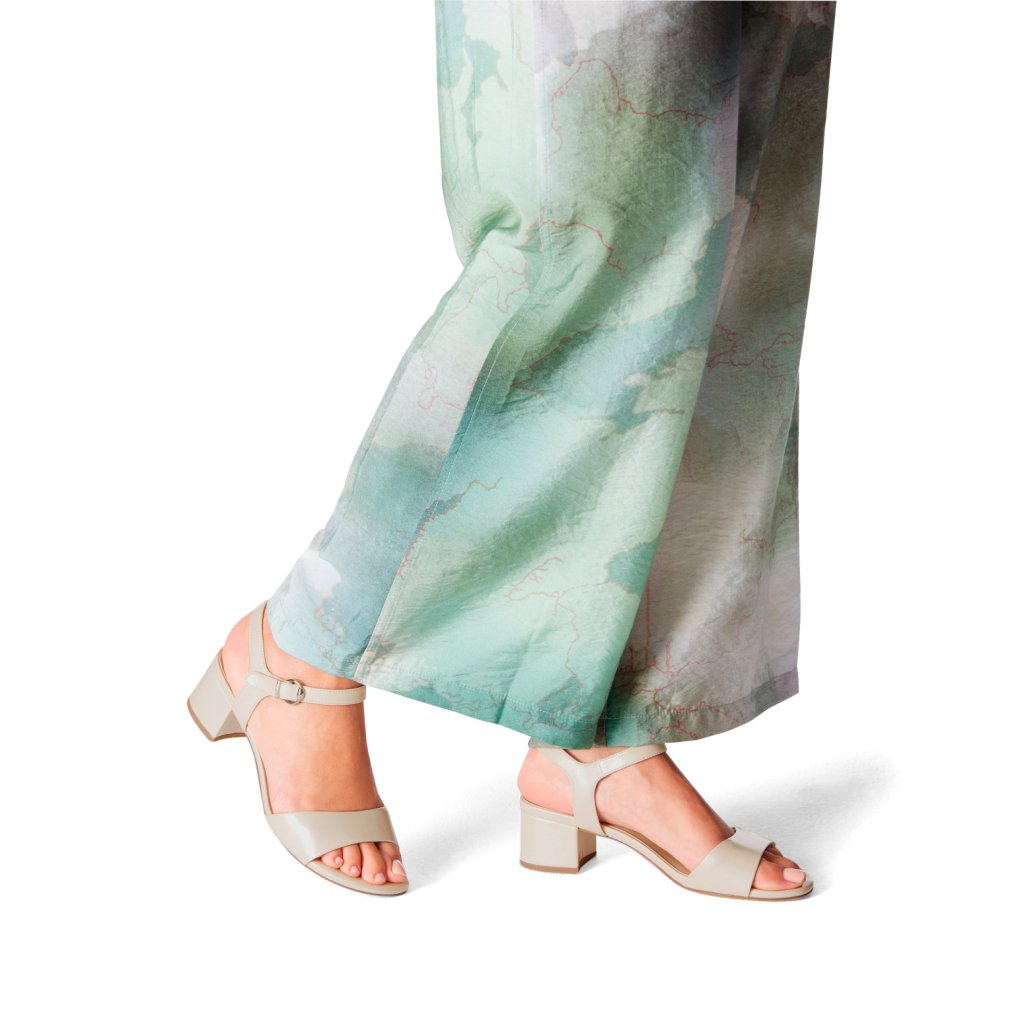 Ez az elegáns Tamaris márkájú bézs szandál tökéletesen ötvözi a modern dizájnt a praktikummal. A finom gyöngyházfényű műbőr felsőrész kifinomult megjelenést kölcsönöz a cipőnek, így nem csak irodai viseletre, hanem alkalmibb esti eseményekre is ideális választás. A stabil tömbsarok az integrált Anti-Slide technológiával kombinálva biztos lépést és csúszásgátló tapadást garantál minden felületen. A csillogó csattal ellátott, állítható bokapánt nem csupán esztétikai elem, hanem pontos illeszkedést is lehetővé tesz a lábfejhez. Ez a szandál nagyszerű mindennapi társ, mert minimalista formájának és neutrális színének köszönhetően könnyen kombinálható bármilyen nyári ruházattal.