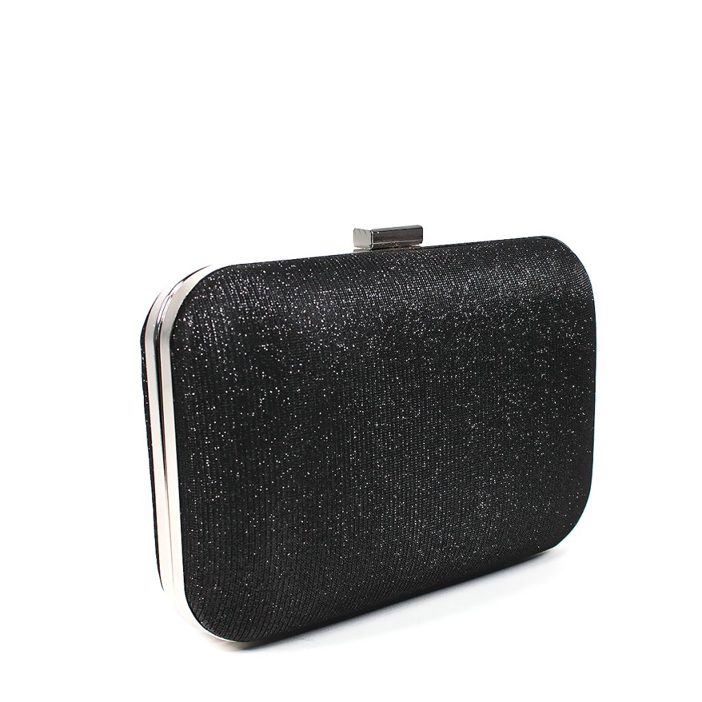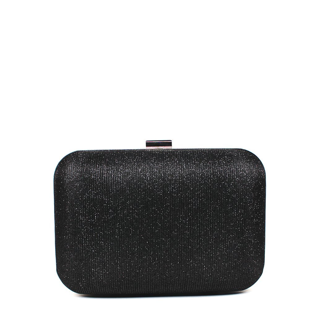 Egészítse ki ruhatárát ezzel a kifinomult fekete alkalmi táskával, amely a klasszikus elegancia és a modern stílus tökéletes ötvözete. A finoman texturált, csillogó felület kivételes fényt kölcsönöz esti megjelenésének, míg a lekerekített, merev forma és az ezüst fémkeret prémium hatást kelt. A táska elegáns felső csattal záródik, és a mellékelt finom ezüst láncnak köszönhetően pillanatok alatt átalakítható válltáskává. Ideális választás esküvőkre, gálákra vagy bármilyen különleges alkalomra, ahol stílusos és kompakt helyet keres legfontosabb apróságai számára.