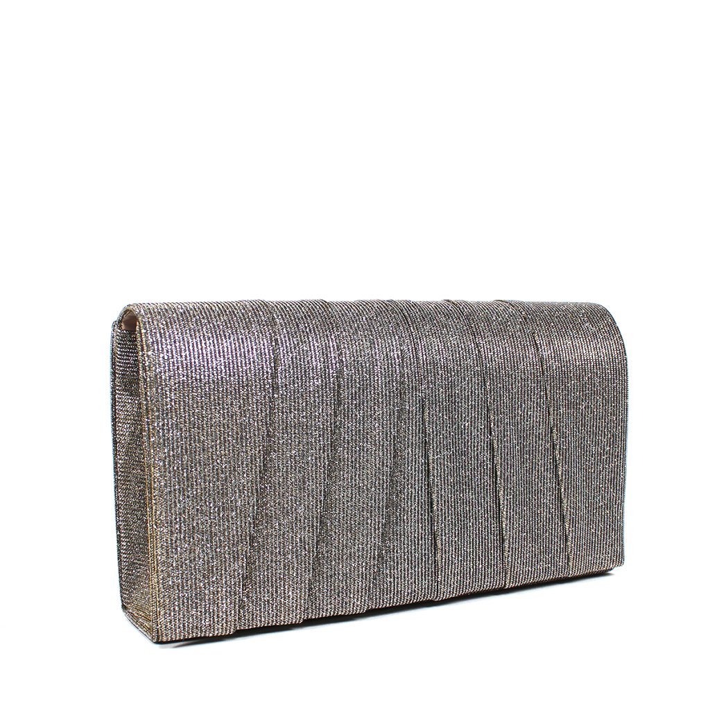 Ez a finom csillogású alkalmi borítéktáska a kifinomult elegancia megtestesítője, amely minden ünnepi öltözéket koronáz meg. A táska különlegessége az elülső fedélen található sűrű plisszírozásban vagy elegáns ráncolásban rejlik, amely érdekes textúrát és finom fényt kölcsönöz a kiegészítőnek. A merev szerkezet biztosítja a táska alakjának megőrzését, a biztonságos mágneses zár pedig stabilan tartja a fedelet a helyén. A belső tér elegendő helyet biztosít a legfontosabb apróságoknak, a rejtett belső fülek pedig lehetővé teszik a lánc rögzítését, így praktikus módon használható kézben tartott borítéktáskaként és válltáskaként egyaránt. A modell több élénk árnyalatban is kapható, hogy minden stílushoz kiválaszthassa a tökéletes darabot.