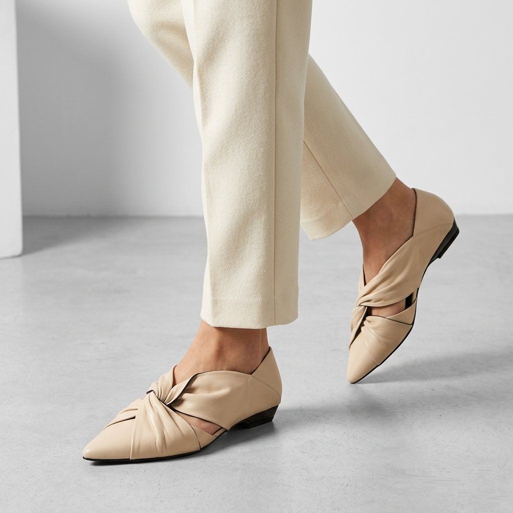 Ez a Secretshoes márkájú női cipőmodell, prémium finom bőrből készült, a modern elegancia és a kivételes dizájn ötvözete. A cipő fő eleme a figyelemfelkeltő, átlapolt és redőzött díszítés a lábujjrészén, amely texturált és szinte szobrászati megjelenést kölcsönöz a modellnek. A kifinomult bézs árnyalat a hegyes orral kombinálva optikailag hosszabbítja a lábakat, míg a fekete, stabil, alacsony sarok és a belső bélés kontrasztos, mégis klasszikus megjelenést kölcsönöz. Az oldalsó kivágások könnyedséget adnak a dizájnnak, így ezek a cipők ideális választássá válnak mind az üzleti viselethez, mind az elegáns esti megjelenéshez azoknak a hölgyeknek, akik kényelmet és egyedi stílust keresnek egyben.