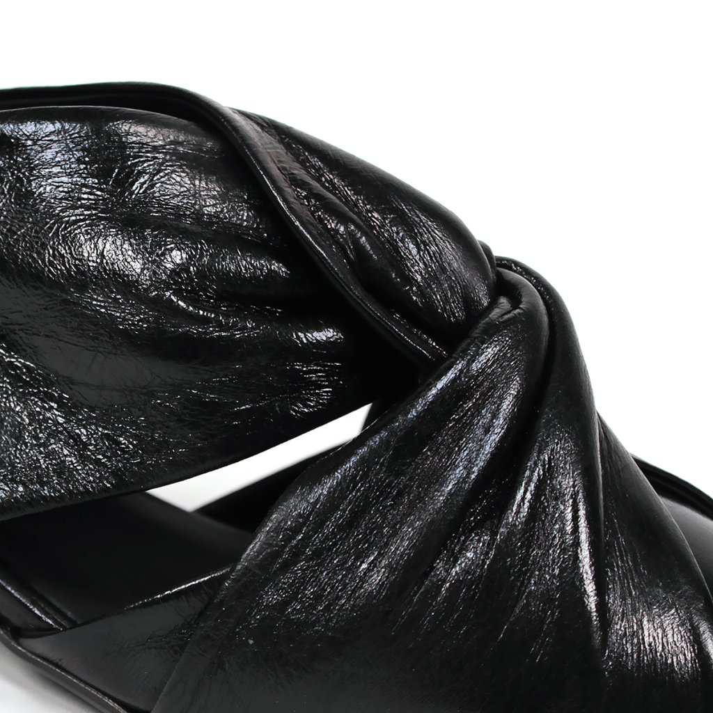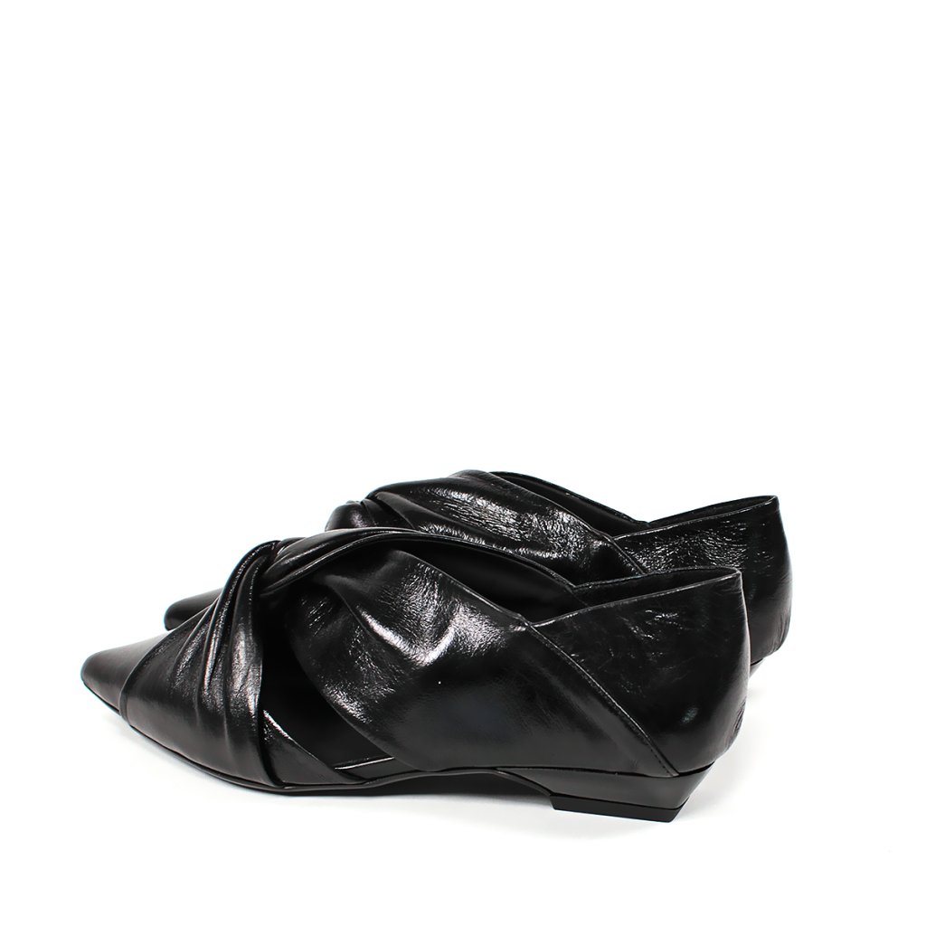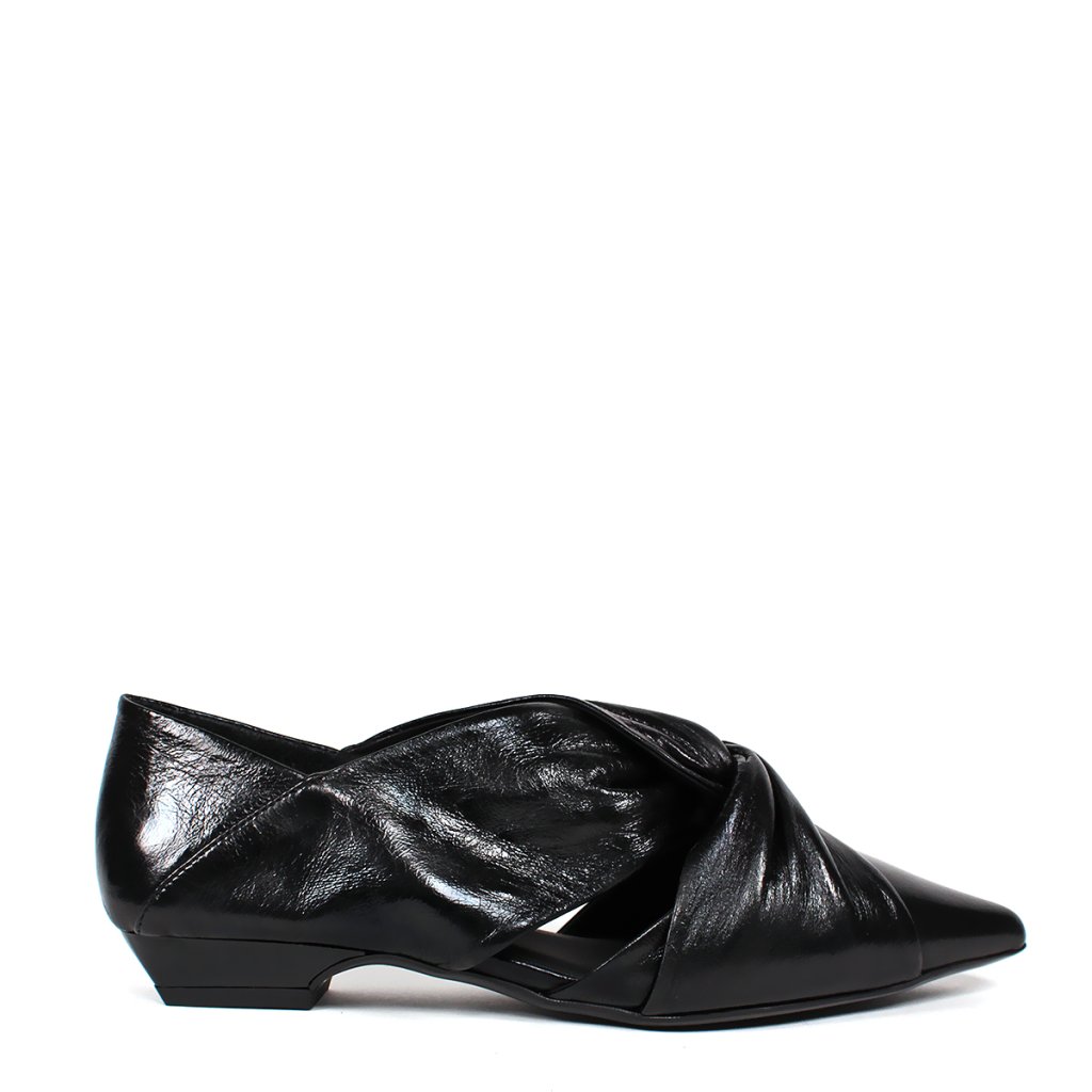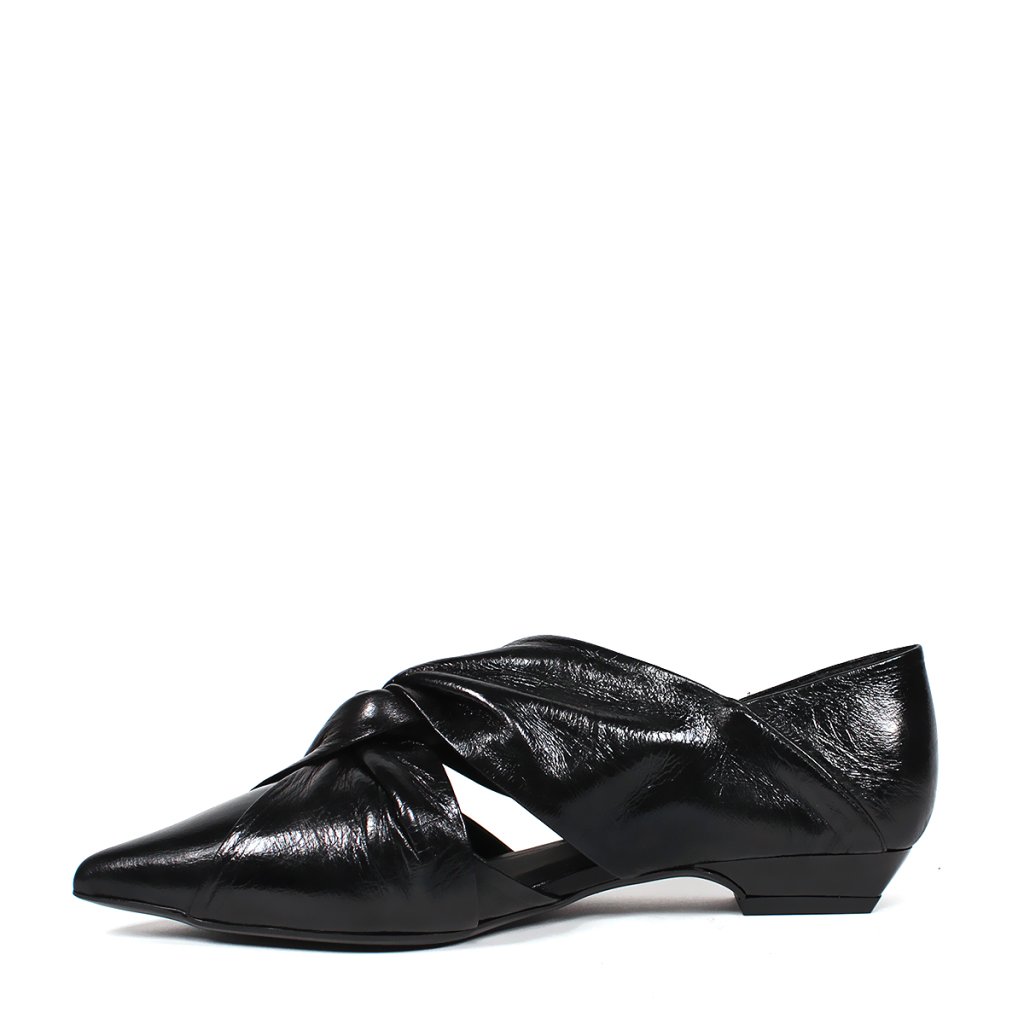 Ez a kifinomult Secretshoes félcipő a modern elegancia és a kivételes dizájn tökéletes ötvözete. A mélyfekete, enyhén fényes bőrből készült modell mindenekelőtt a rüszten található elegáns csomóval tűnik ki, amely textúrát és egyedi karaktert kölcsönöz a cipőnek. A hegyes orr, alacsony, stabil sarokkal kombinálva nőies sziluettet és egyben egész napos kényelmet garantál. Az oldalsó kivágások könnyedséget kölcsönöznek a dizájnnak, így ez a darab ideális választás az irodába, valamint elegánsabb társasági ruhák kiegészítéseként is.