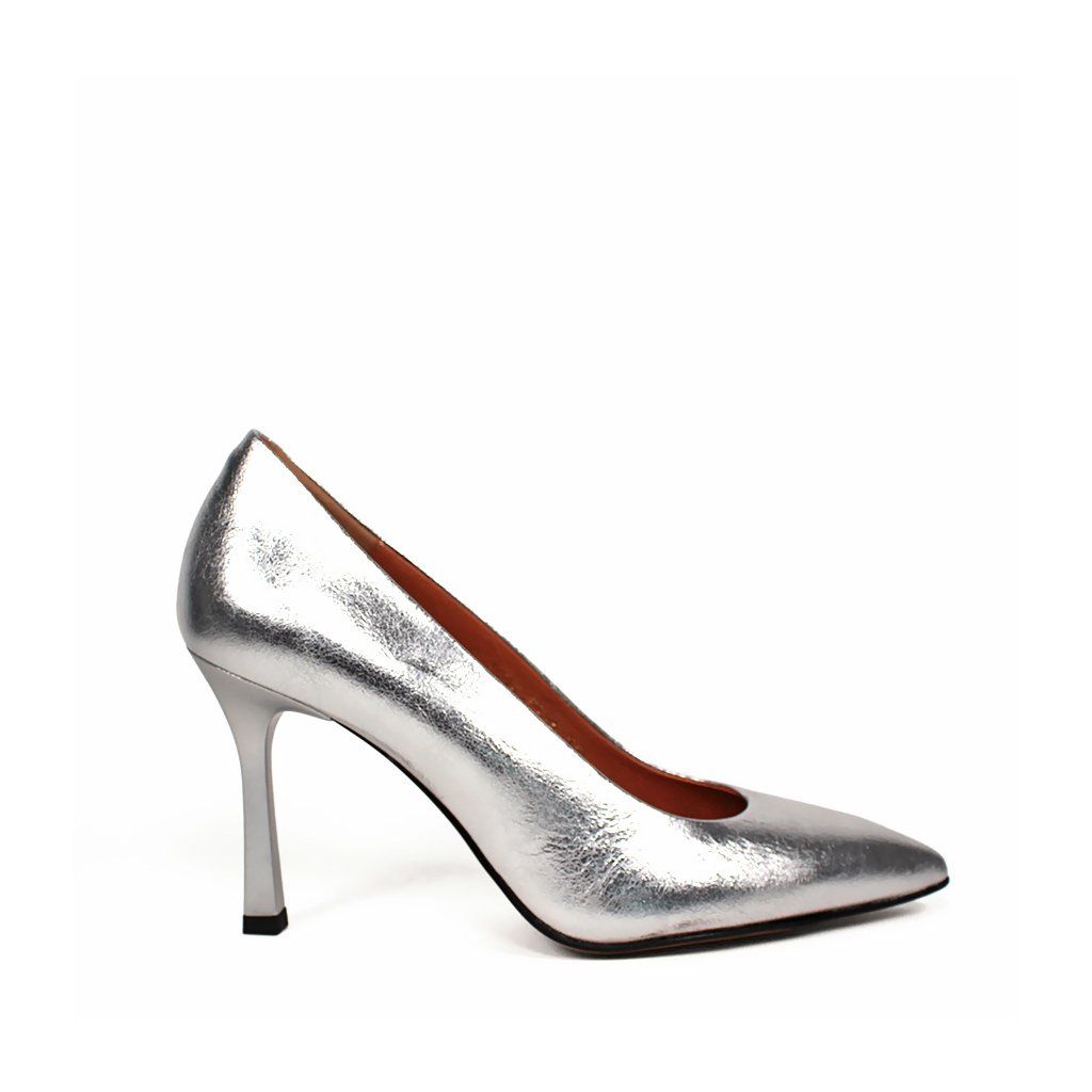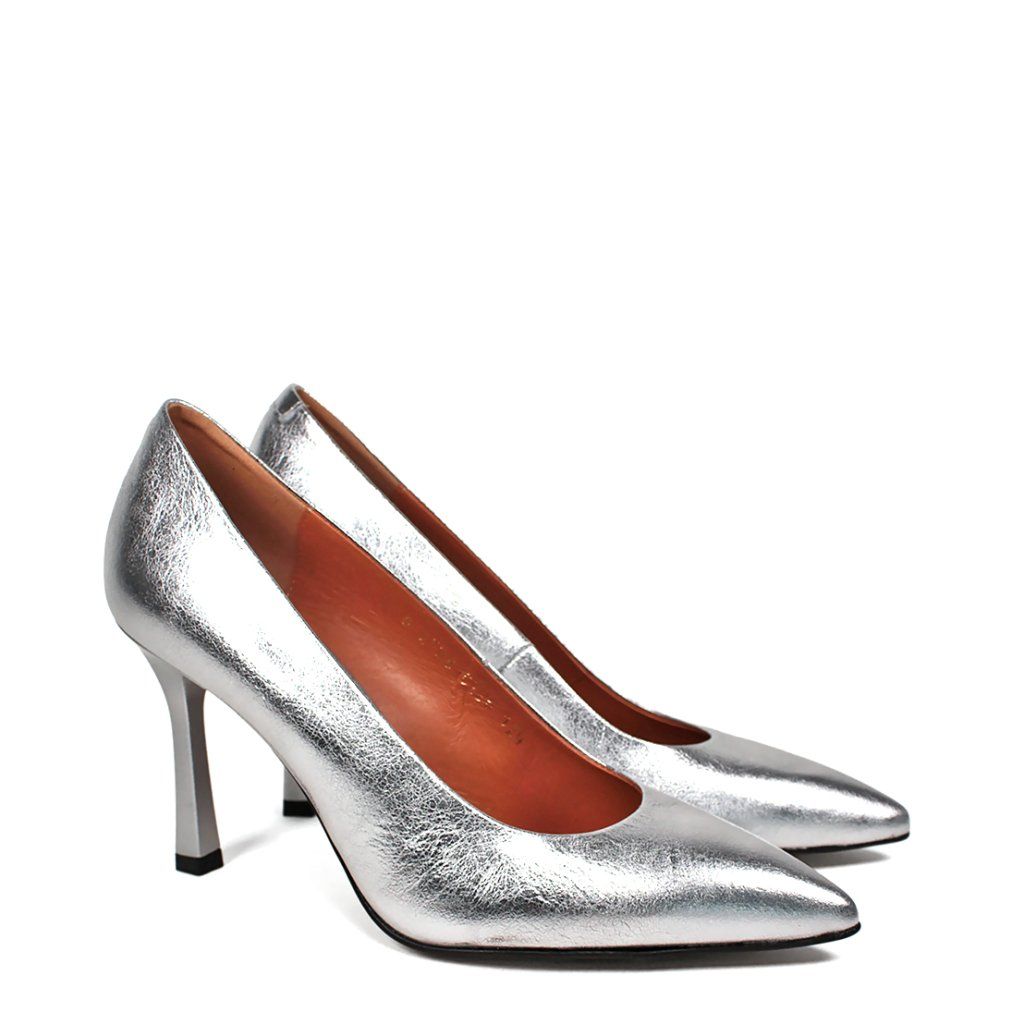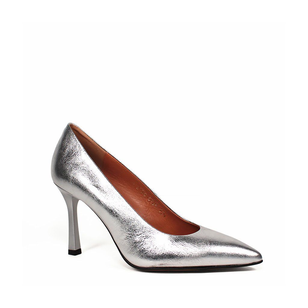 Az elegáns, hegyes orrú szabás, vékony, 9 cm magas tűsarkúval kombinálva tökéletesen meghosszabbítja sziluettjét, és kecsessé teszi járását. A teljes dizájnt egy ízlésesen illeszkedő ezüst tűsarkú egészíti ki, míg a barna bőr belső kényelmet és légáteresztő képességet biztosít még egy hosszabb estélyen is.