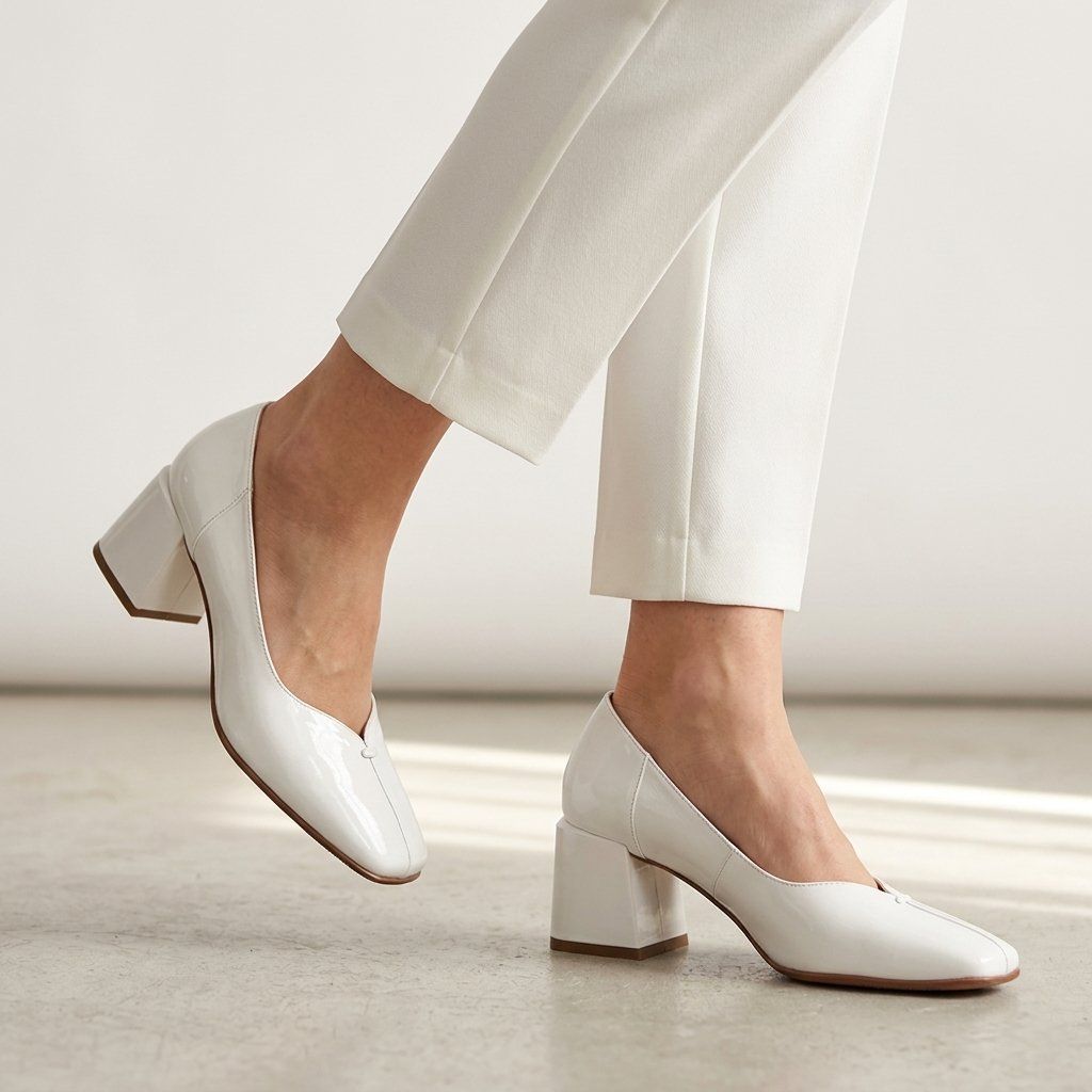 Divatos szabás: A szögletes orr-rész és a finom kivágás a lábfejen optikailag hosszabbítja a lábakat.