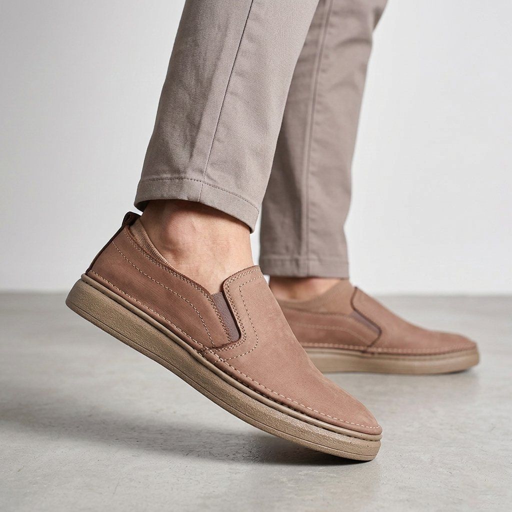 Ez a Secretshoes márkájú férfi bebújós cipő tökéletes ötvözete a stílusnak és a kényelemnek, így ideális választás mindennapi városi viseletre, valamint alkalmi üzleti megjelenésre. A cipő felsőrésze kiváló minőségű, természetes barna bőrből készült, melyet finom, kontrasztos fehér díszvarrás egészít ki, egyedi jelleget kölcsönözve a lábbelinek. Az oldalsó elasztikus betétek nemcsak a gyors és egyszerű felvételt garantálják, hanem rugalmasan is alkalmazkodnak a láb formájához a maximális kényelem érdekében. A tartós, ergonómikus talp kiváló stabilitást és egész napos kényelmet biztosít, így ez a modell a modern férfi ruhatárának elengedhetetlen alapdarabjává válik.