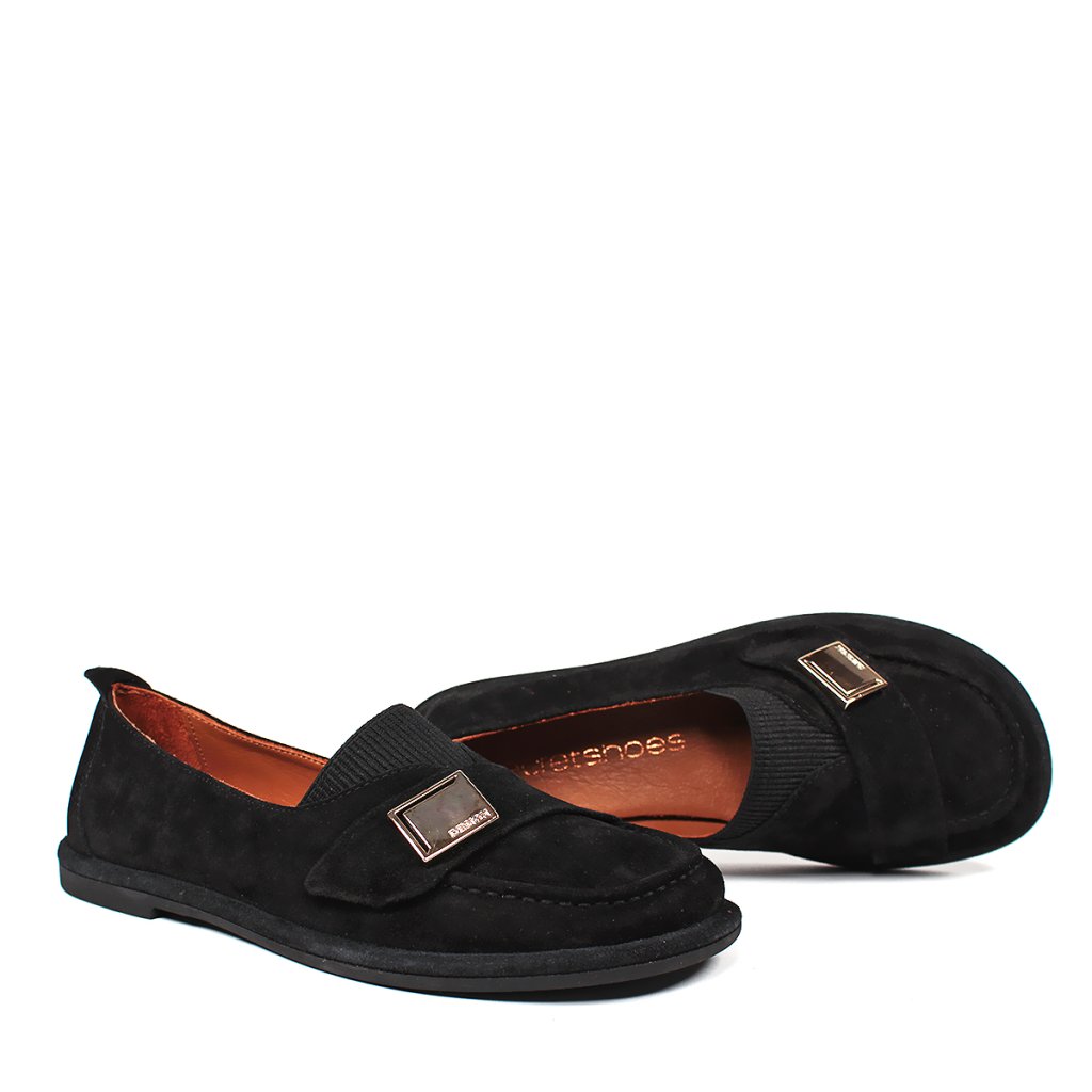 Kényelmes Secretshoes bőr mokaszin barna velúrbőrből, ideális az őszi kollekcióhoz. Alacsony, 1,5 cm-es sarokkal és elegáns arany csattal tökéletes választás a stílusos és kényelmes viselethez.
