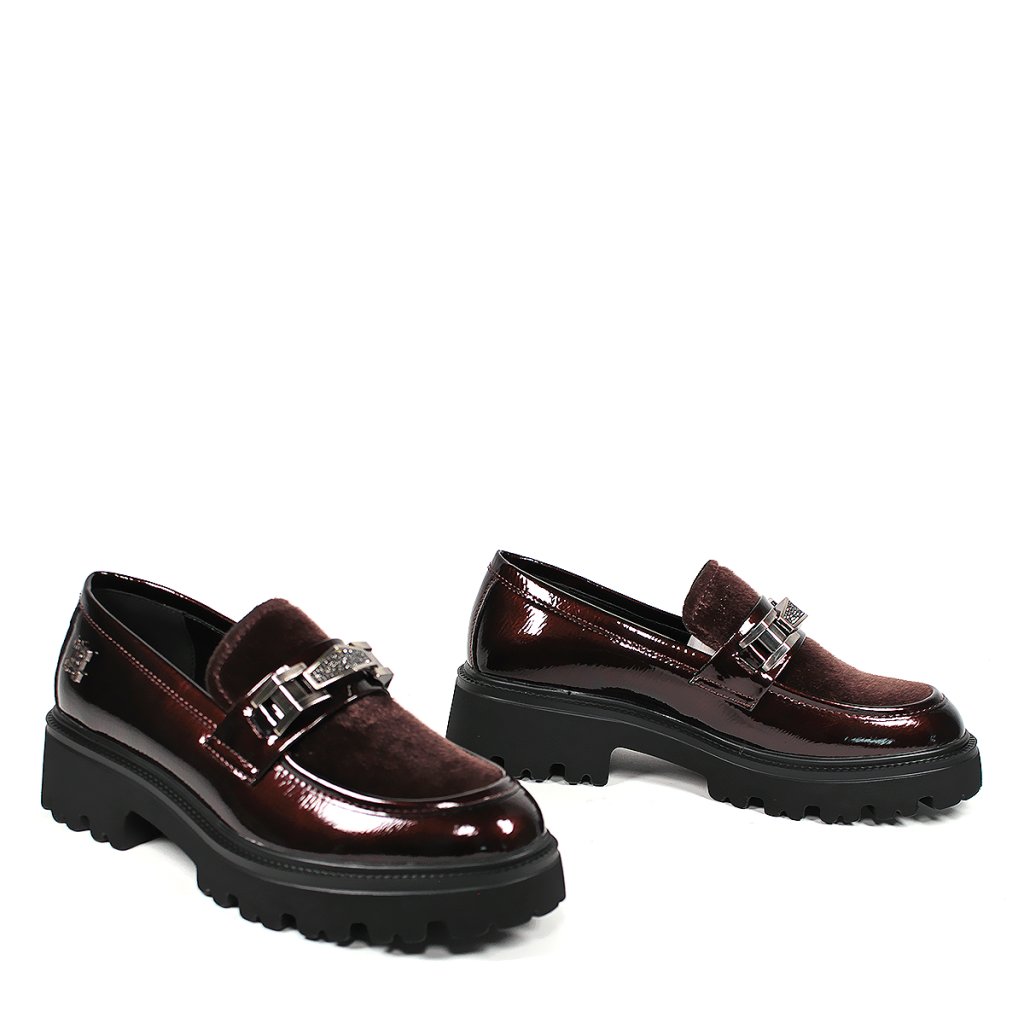 Elegáns és kényelmes, lakkozott Laura Biagiotti mokaszin barna színben, amely a kedvenc társaddá válik minden nap. Ezek a stílusos, 4,5 cm-es sarokmagasságú mokaszin ötvözik az olasz dizájnt a maximális kényelemmel. A felsőrészük minőségi bőr utánzatból készült, fényes lakkozott felülettel, míg a belső rész textilből van, ami biztosítja a kellemes viseletet. Ideális választás a modern nők számára, akik a stílus és a kényelem tökéletes egyensúlyát keresik.