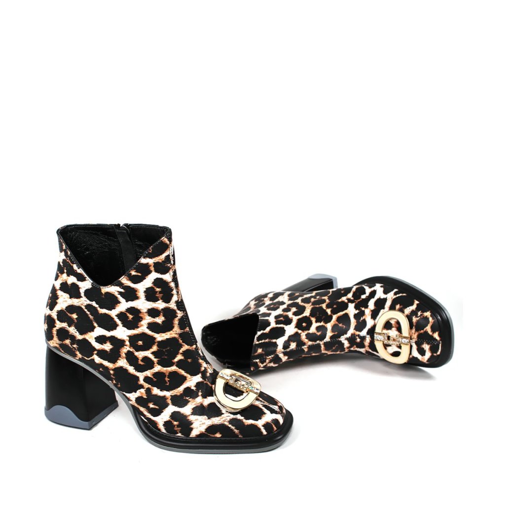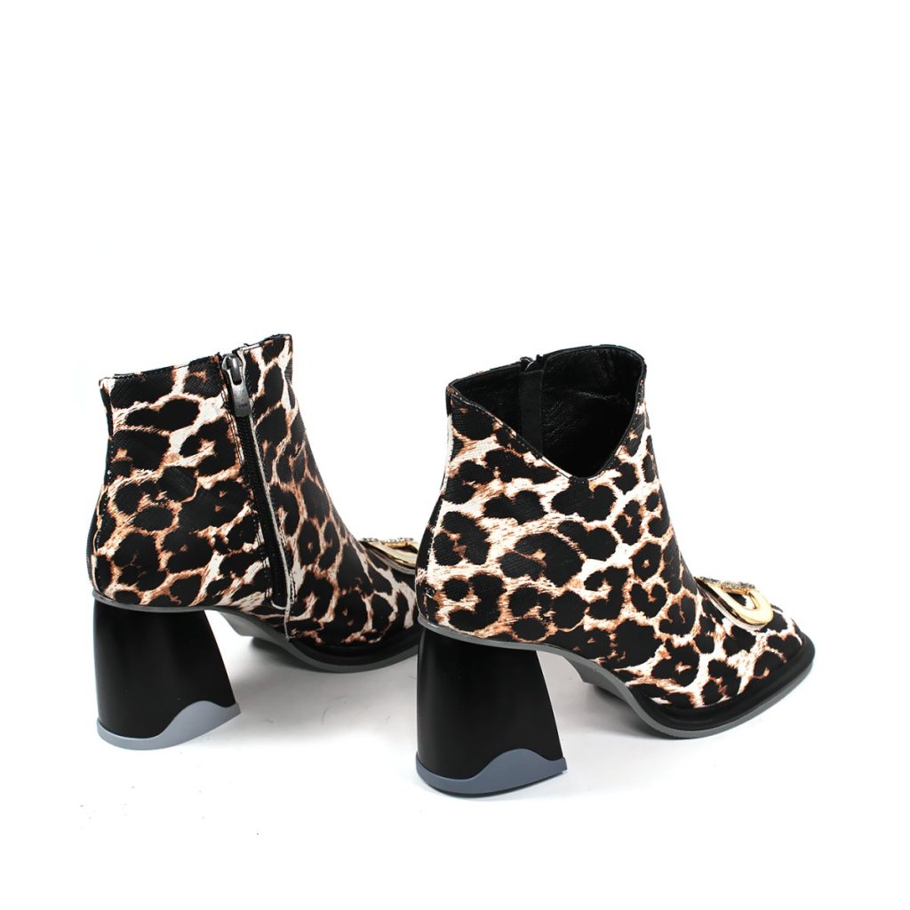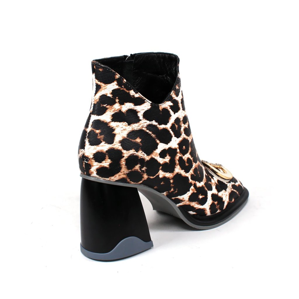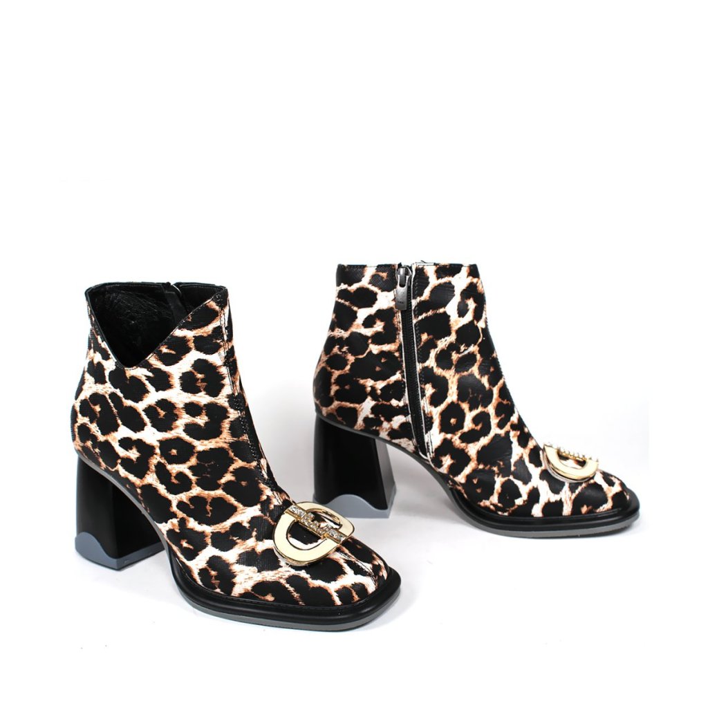 Leopárd mintás IN - stílusos bőr bokacsizma kényelmes vastag sarokkal, minőségi bőrből. A SECRETSHOES szlovák márkát egyedi design, elegancia és magas minőség jellemzi. Sarokmagasság: 7,5 cm Szín: leopárd Szezon: ősz/tél Lábujj formája: kerek Felső anyag: bőr Bélés anyaga: bőr Talp anyaga: szintetikus