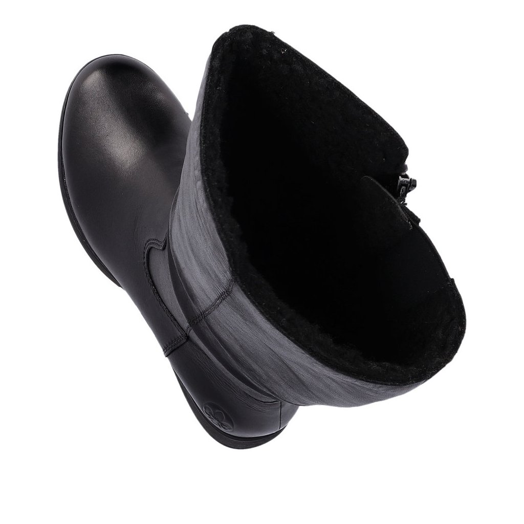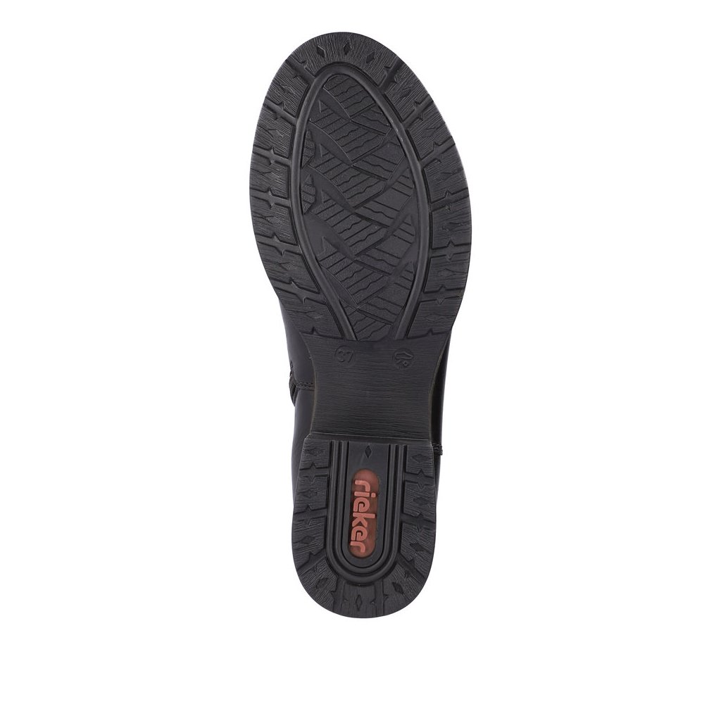 Egyedi női cipő a RIEKER-től, amely egész nap kényelmes társad lesz. A bőr felsőrészt díszítő csíkozás és a márka nyomtatott logója díszíti. A könnyű felhúzás érdekében a belső oldalon funkcionális cipzár található, és a bevarrt rugalmas pántnak köszönhetően tökéletesen alkalmazkodik a lábfejhez. A kényelmes és puha talpbetét kiváló minőségű anyagból készült, és minden lépésnél Ön mellett lesz. A meleg béléssel biztosan nem fog fázni. Ez a lenyűgöző modell egyaránt alkalmas munkahelyi alkalmakra, szórakozásra vagy moziba járáshoz.