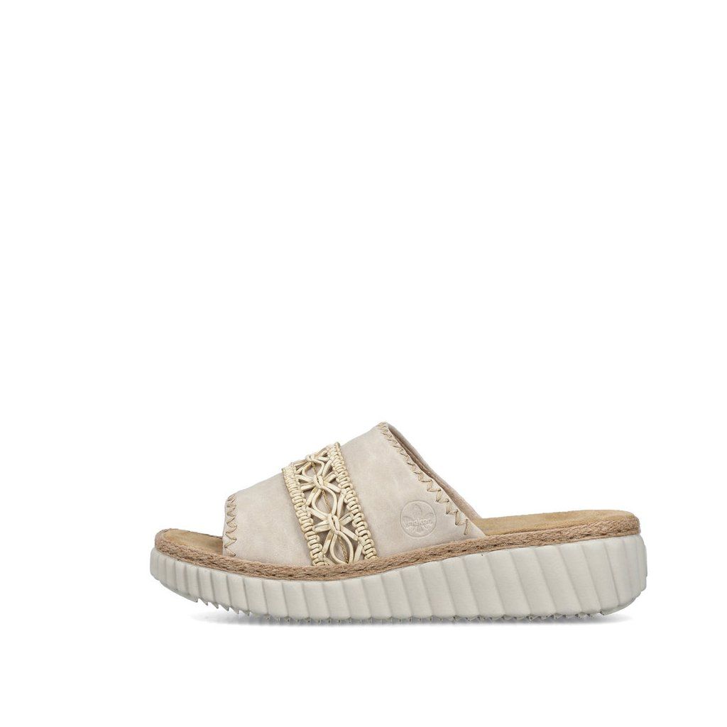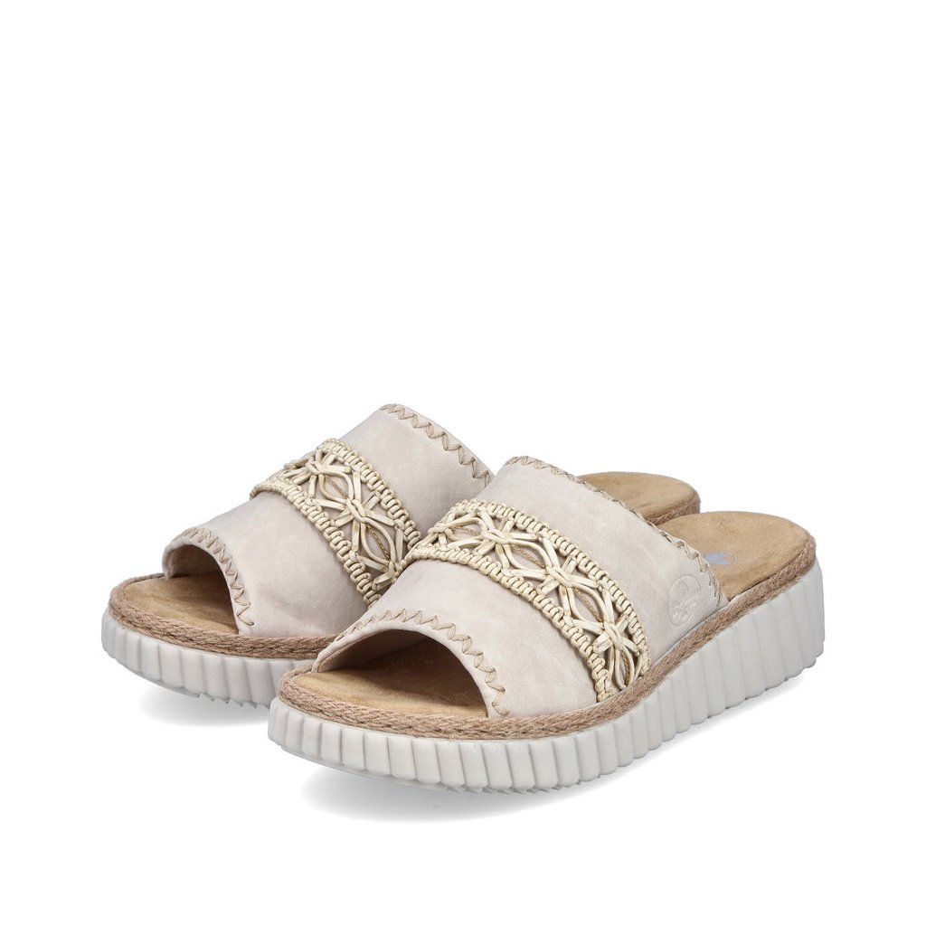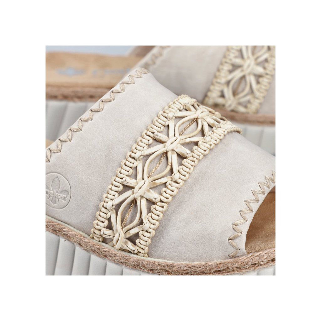 A RIEKER márkájú papucsok egyedi megjelenésükkel vonzzák a tekintetet, a lábfej fölötti széles pánton található díszítőelem stílusos megjelenést kölcsönöz a cipőnek, és egyúttal támaszt nyújt a lábnak. Egyszerűen csak csúsztassa bele, és élvezze a szélesebb lábfejhez is igazodó talpbetét által nyújtott kényelmet. A magasabb talp emellett tompítja a járás közbeni ütéseket, ami hosszabb viselés esetén is biztosítja a kényelmet. Ezek a papucsok ideális választás azoknak a nőknek, akik stílust és kényelmet keresnek egyben.