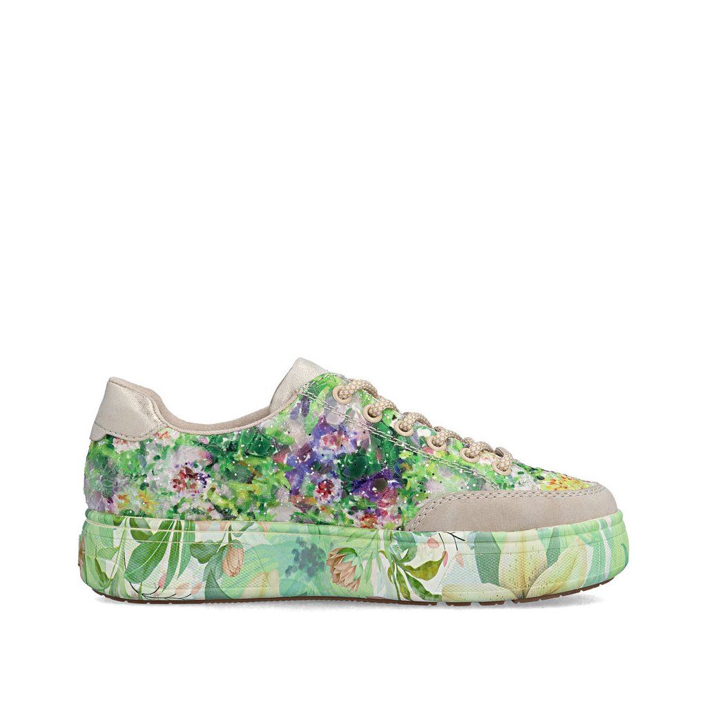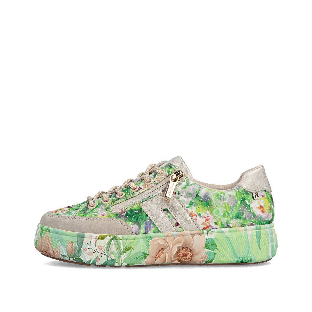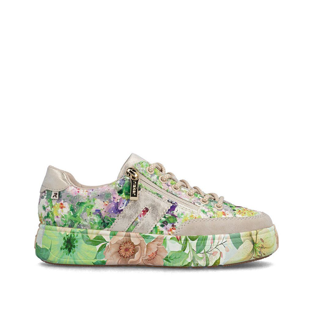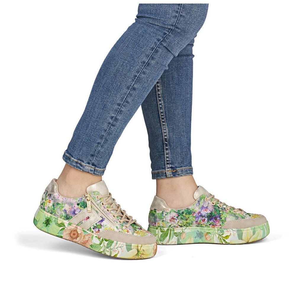 Ezek a RIEKER cipők igazi ékkövek a női lábbelik között, amelyek ötvözik a stílust, a kényelmet és az egyedi dizájnt. A feltűnő virágminta a csillogó részletekkel és a felsőrész arany visszaverődésekkel kombinálva azonnal felkelti a figyelmet, és minden nőnek különleges érzést kölcsönöz. A praktikus fűzés a lábfejen lévő cipzárral együtt megkönnyíti a felvételt és a cipő pontos illeszkedését a láb formájához, míg a puha, kivehető talpbetét egész napos viselet esetén is biztosítja a kényelmet. A magasabb talp elnyeli az ütéseket és stabilitást biztosít, így minden lépés biztonságos és kellemes. Ez a RIEKER modell magabiztos és modern megjelenést garantál, akár munkába, városi sétára vagy szabadidős tevékenységekre tart. Ezekkel készen állsz, hogy bárhová is mész, lenyűgözd a környezeted. A modern megjelenés és a maximális kényelem tökéletes összhangja a funkcionális technológiáknak köszönhetően – ez a RIEKER Sport cipő.