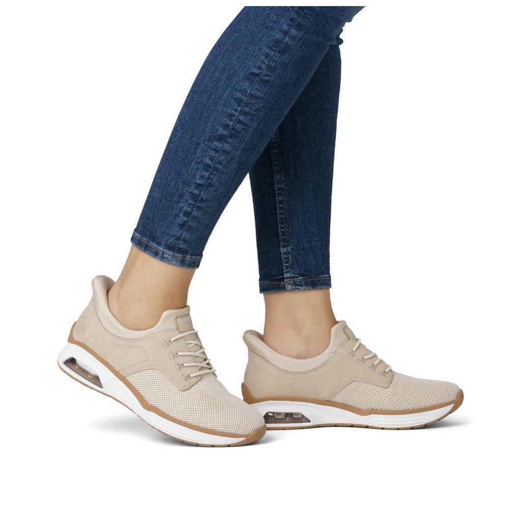 A RIEKER cipők egyedi megjelenéssel tűnnek ki, amely ötvözi az attraktív felsőanyagokat, a finom csillogást az elején és a márka logóját a sarokrészen, ami modern és dinamikus megjelenést kölcsönöz nekik. A rugalmas felső perem megkönnyíti a felvételt, a fűzés pedig tisztán dekoratív, hangsúlyozva a jellegzetes dizájnt. A kivehető talpbetét formázott és kellemesen puha a viselési kényelem biztosítása érdekében, az egyedi talp pedig nemcsak jól néz ki, hanem elnyeli a járás közbeni ütéseket is, így egész napos kényelmet biztosít. Ezek a cipők ideális választás a mindennapi viselethez, amikor stílusosan szeretne kinézni és jól érezni magát.