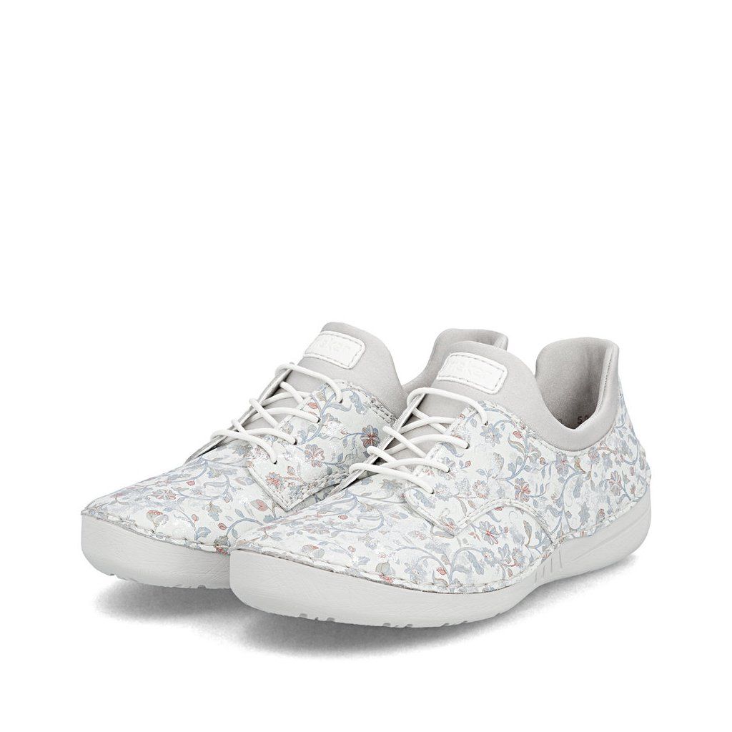 Az igazi műalkotásnak számítanak ezek a RIEKER márkájú cipők, amelyek első pillantásra lenyűgöznek eredeti kidolgozásukkal. A felsőrész egyedi nyomtatással van díszítve, amely egy csipetnyi kreativitással adja meg a cipőnek a sajátos karakterét. Egyszerűen felvenni és nemes eleganciával kilépni – pontosan ez jellemzi ezt a modellt. A felső szegély rugalmas pereme a klasszikus fűzés helyett rugalmas gumival kombinálva maximális kényelmet, gyors felvételt és tökéletes illeszkedést biztosít a láb formájához. A járás kényelmét a bőr talpbetét biztosítja, amely kellemes tapintású, míg a rugalmas talp elnyeli az ütéseket és egész nap gördülékeny lépést tesz lehetővé. Ez a modell ideális azoknak a nőknek, akik kiemelkedő megjelenést és egész napos kényelmet részesítenek előnyben, legyen szó városi sétákról, utazásról vagy mindennapi tevékenységekről.