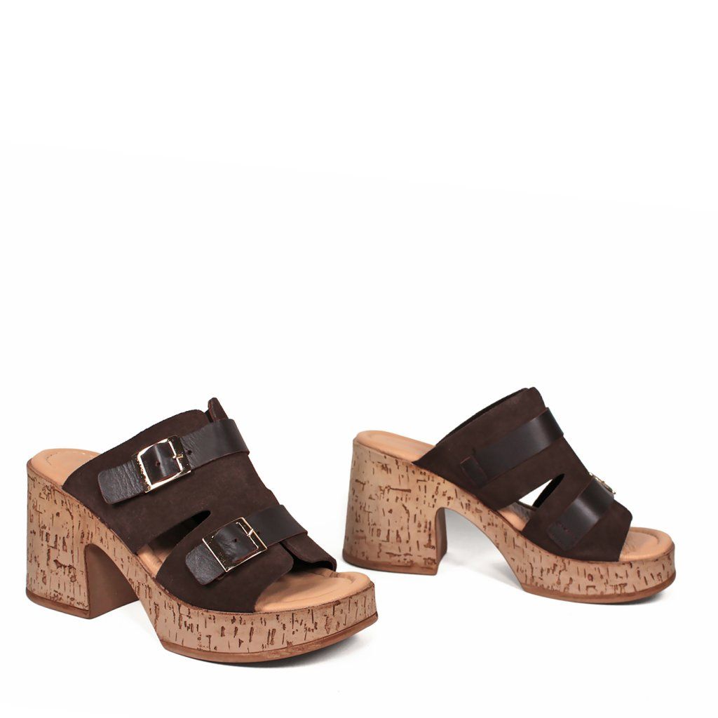 Stílust és kényelmet keres? Ezek a modern, parafa platformos, minőségi bőr és elegáns arany csatos papucsok telitalálat! A 8,5 cm magas sarok optikailag hosszabbítja a lábakat, míg a puha bőr egész napos kényelmet biztosít.
