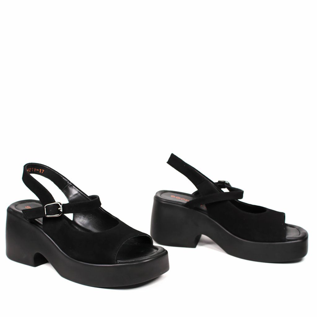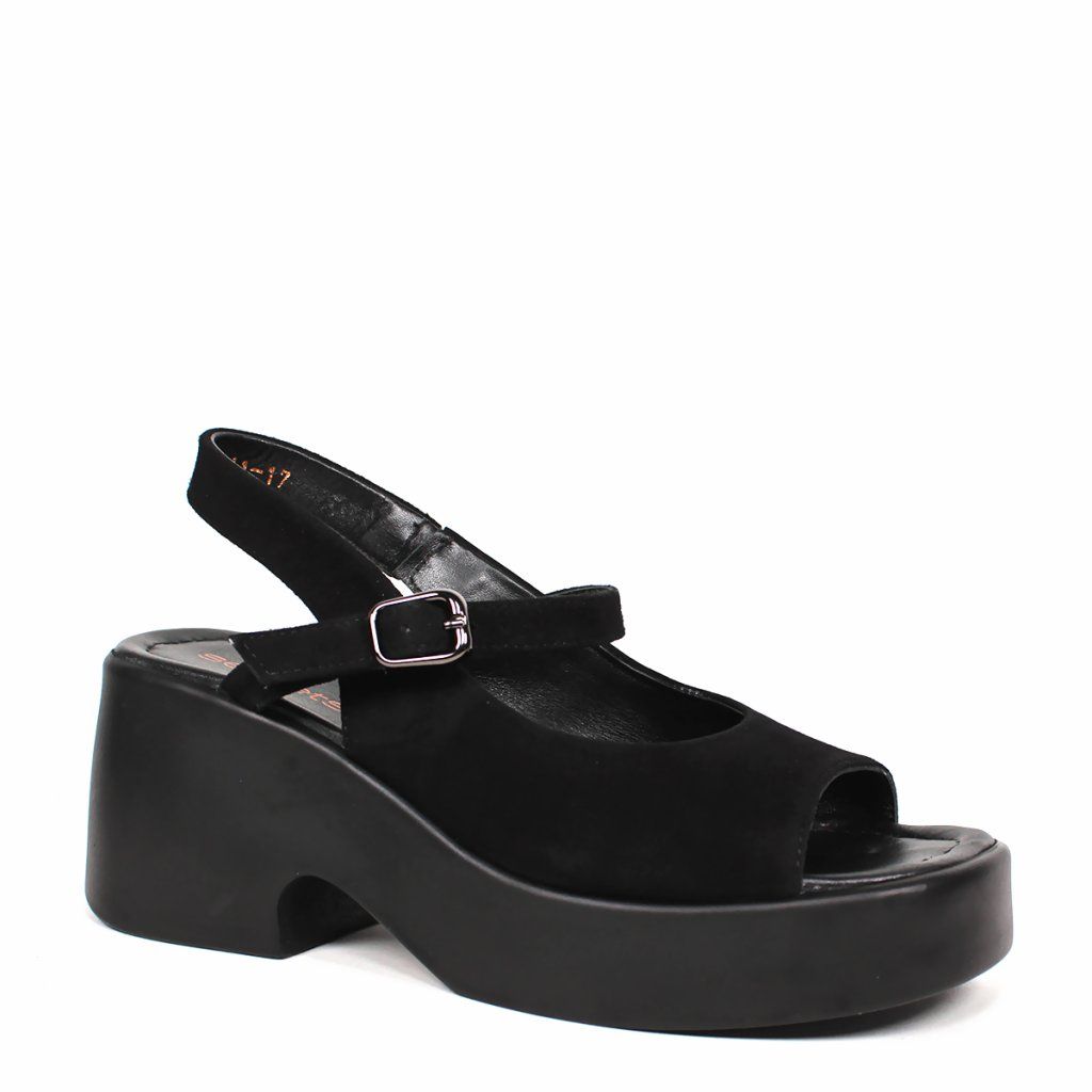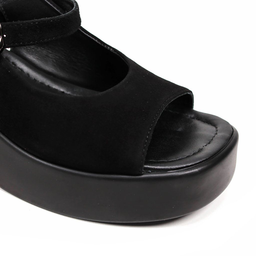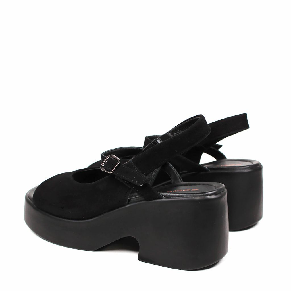 Részletek: Nyitott orr, csatos pánt a lábfejen és slingback rögzítés a sarok körül.