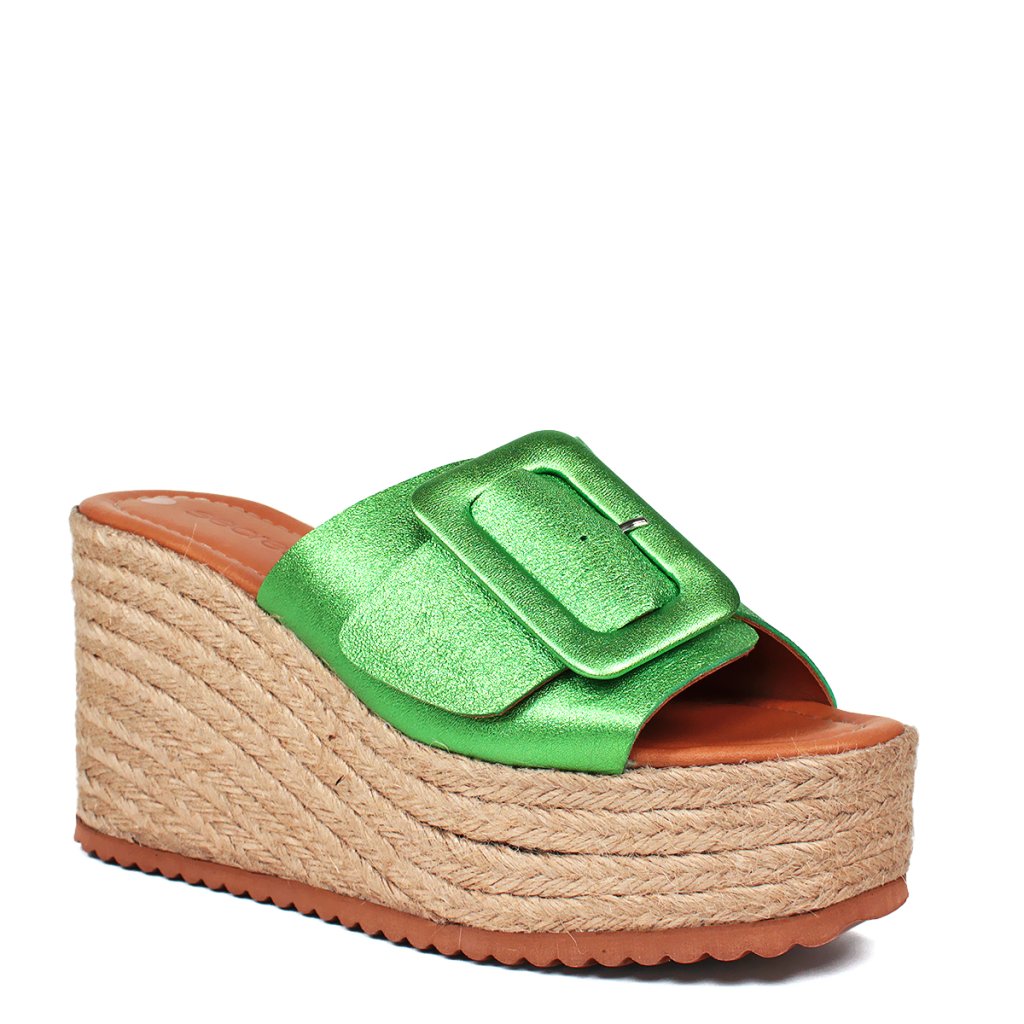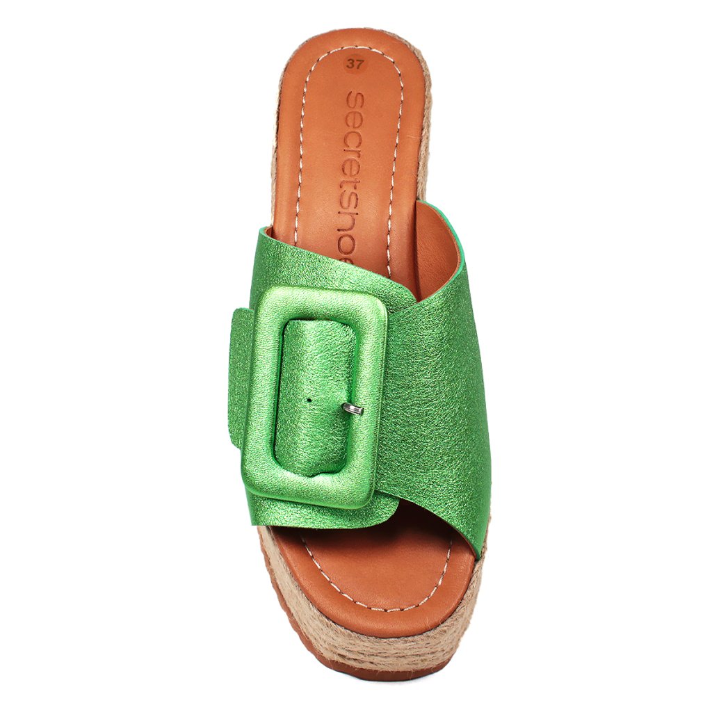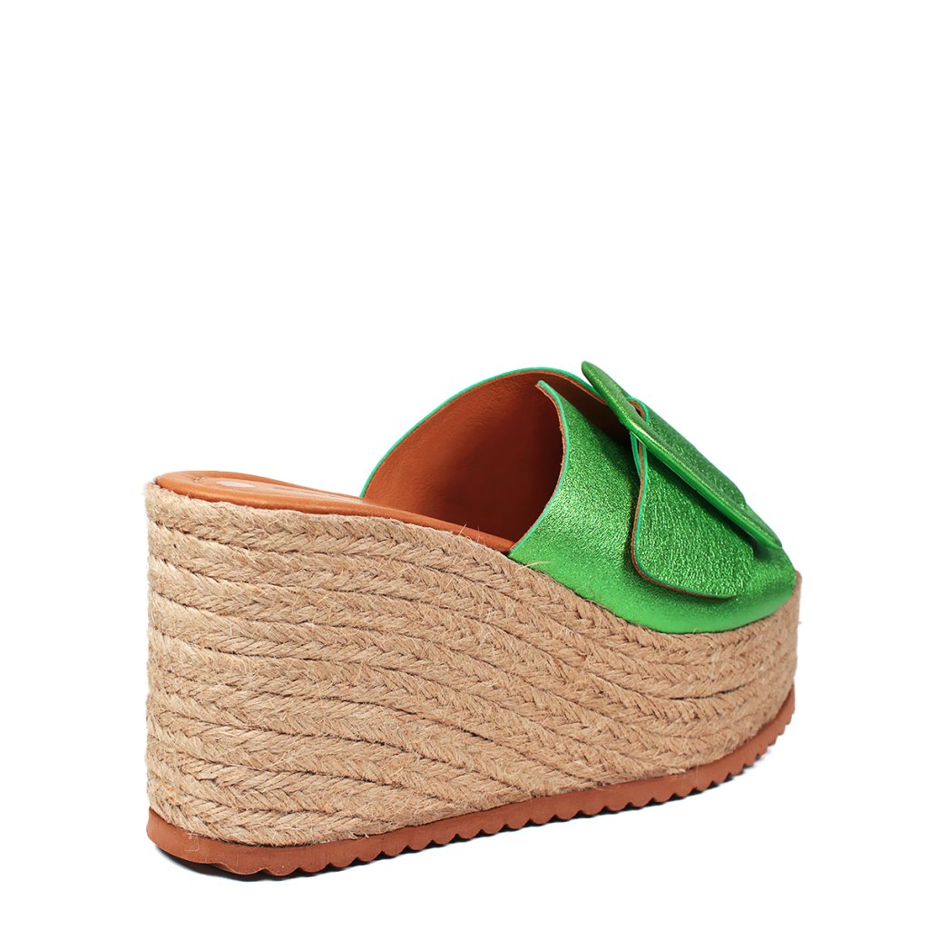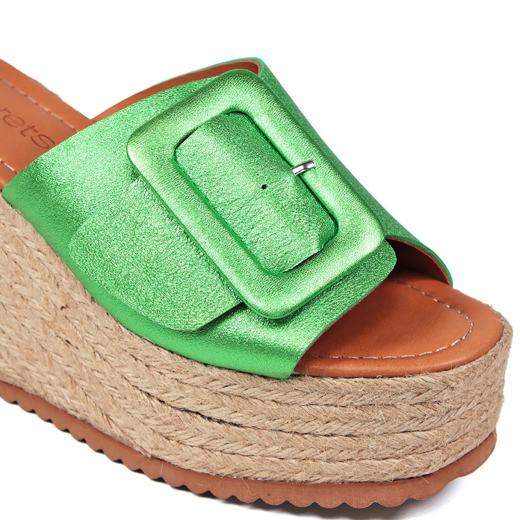Bőr flip-flop kényelmes platformon, ideális lábbeli a nyári vakációhoz.