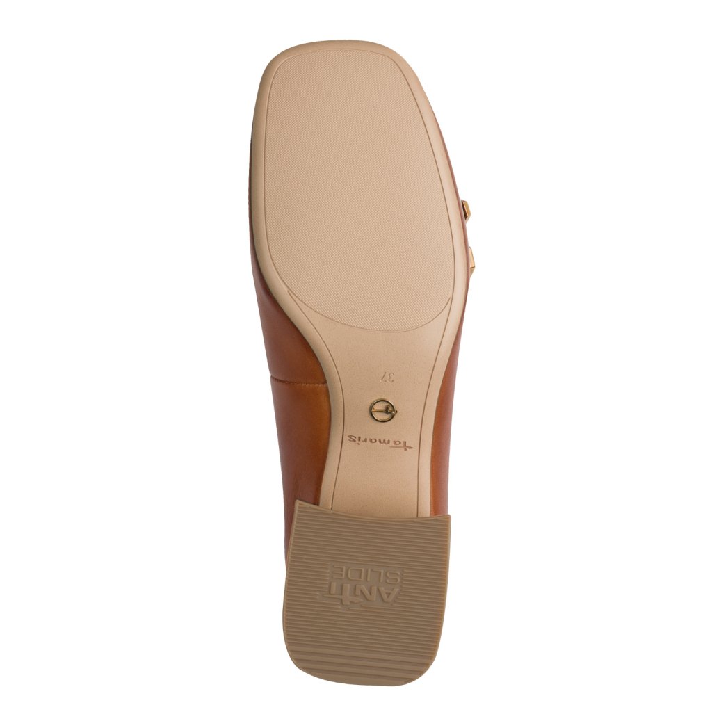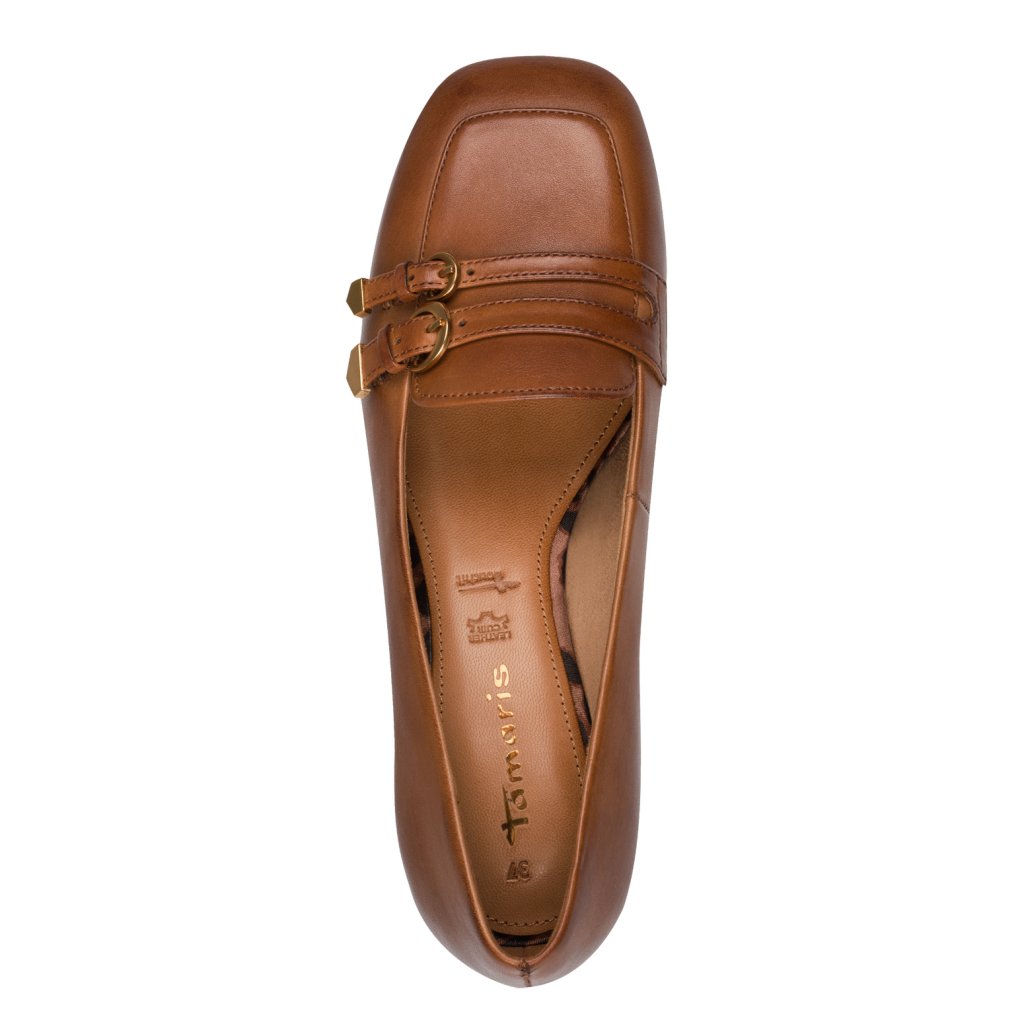 Ez a Tamaris mokaszin a klasszikus elegancia és a modern anyagmegmunkálás kiváló kombinációja. A szintetikus, precízen kidolgozott, konyakbarna árnyalatú felsőrész tartós és könnyen kezelhető, miközben megőrzi a valódi bőr prémium megjelenését.