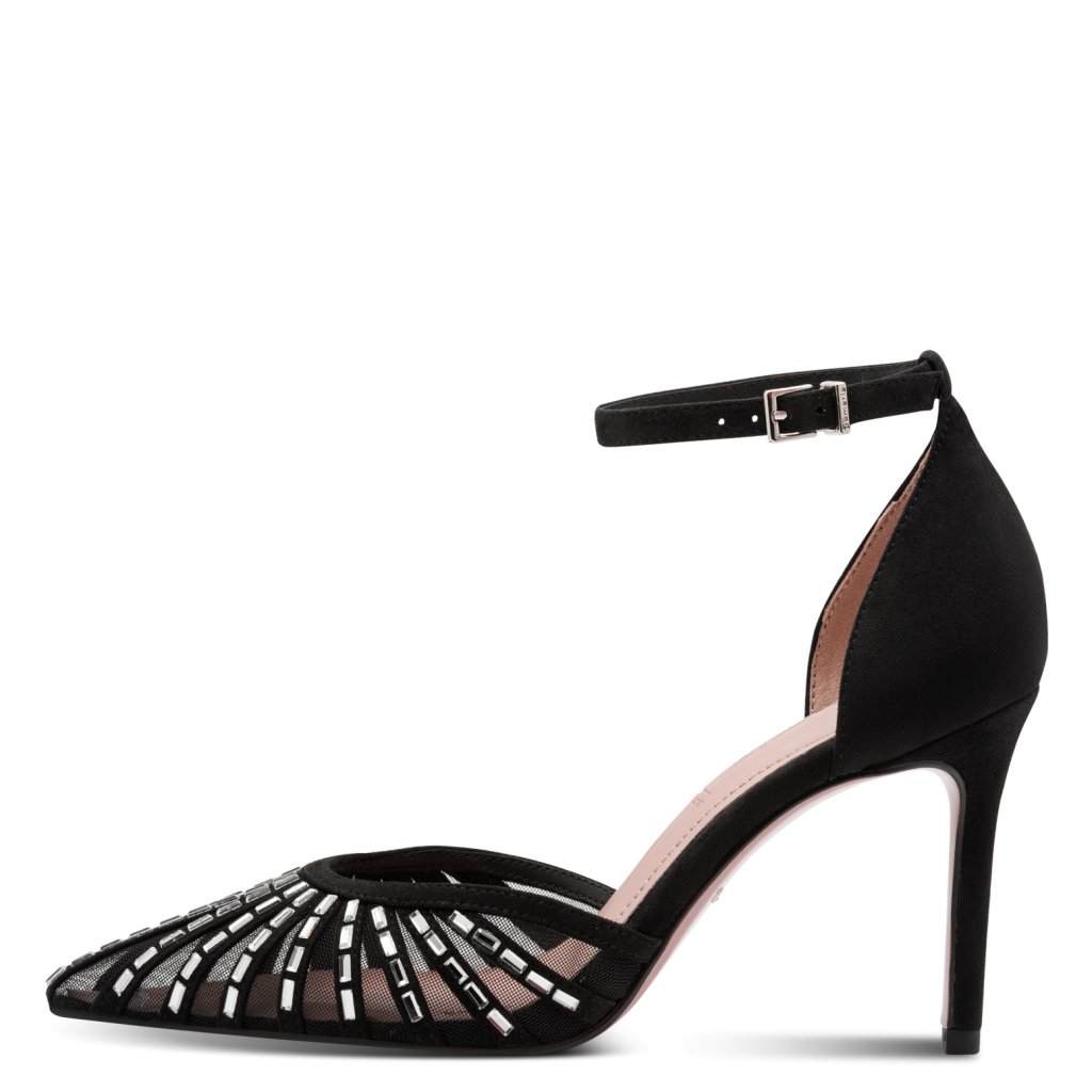 Lépjen be az elegancia világába ezekkel a Tamaris Gabbe magassarkú cipőkkel fekete színben, amelyek tökéletes választás az év végi ünnepekre. Hegyes orr és a modern D'Orsay szabás kifinomult megjelenést kölcsönöz, míg az ezüst szegecsek hálós mintája szórakoztató részletet ad.