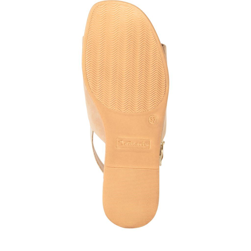 Ezek a Tamaris szandálok finom bézs színben a diszkrét luxus és a sokoldalúság tökéletes példái. A felsőrész prémium valódi bőrből készült, amely finom textúrájának és természetes színének köszönhetően optikailag hosszabbítja a lábakat, és szinte bármilyen nyári ruhatárba észrevétlenül beleillik. A bézs tónus tisztaságot és eleganciát sugároz, így kiváló választás mindennapi irodai viselethez, mind társasági eseményekhez.