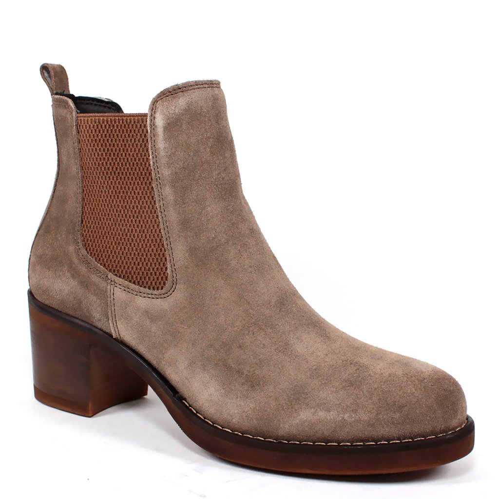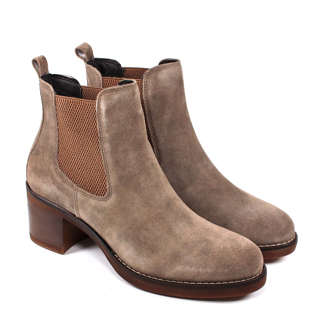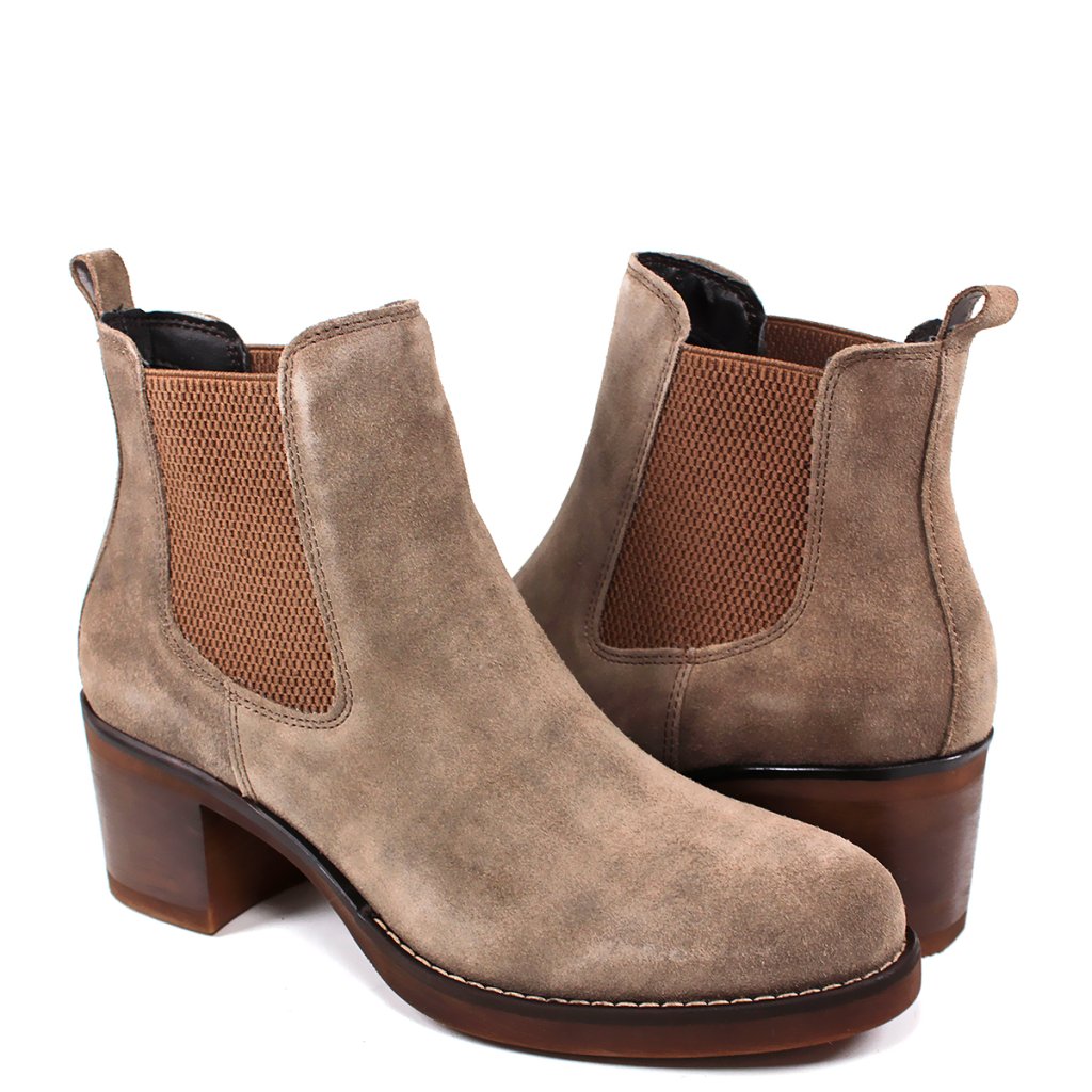 Klasszikus bokacsizma velúr bőrből, kényelmes vastag sarokkal - ideális cipő az átmeneti időszakhoz.