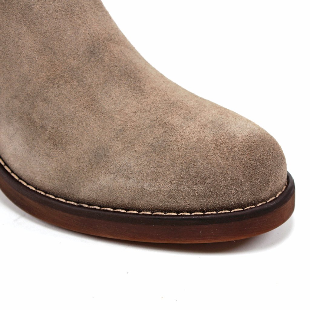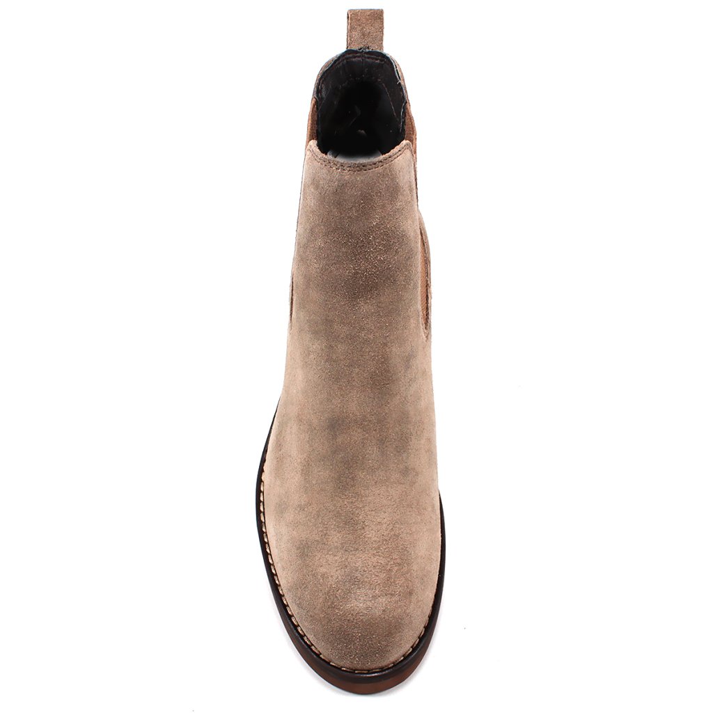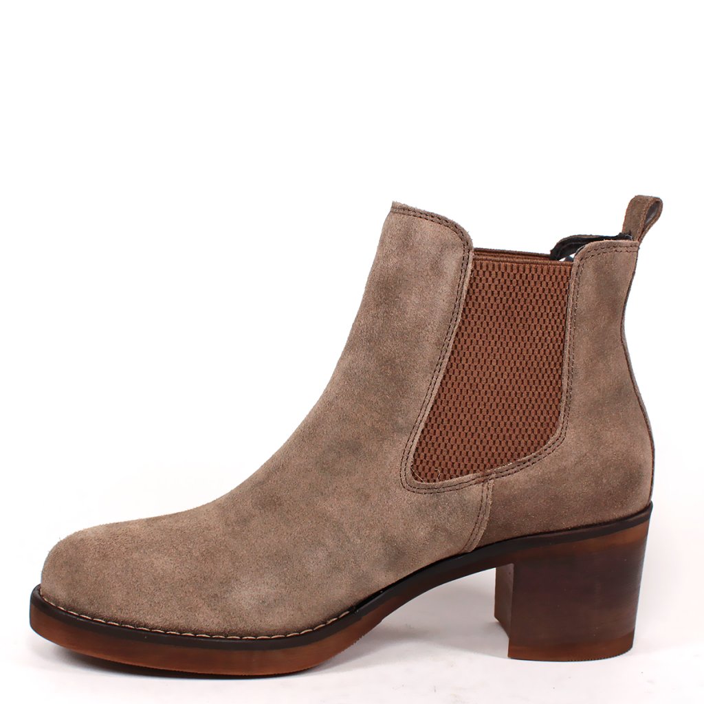 Klasszikus bokacsizma velúr bőrből, kényelmes vastag sarokkal - ideális cipő az átmeneti időszakhoz.