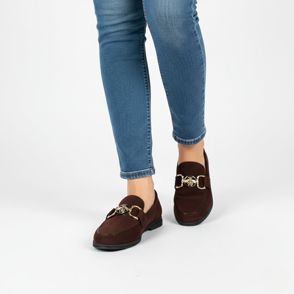 Ez a(z) Secretshoes márkájú velúr mokaszin tökéletes ötvözete a kifinomult eleganciának és a modern stílusnak. A mély bordó színű, prémium felületű felsőrészt egyedi, arany tónusú fém dísz egészíti ki, amelyet egy részletgazdagon kidolgozott méh motívum dominál. A klasszikus szabás és a sötét árnyalatú, kényelmes talp garantálja, hogy ez a lábbeli nemcsak mindennapi öltözékének stílusos kiegészítője lesz, hanem az alkalmibb eseményekre is megbízható darab.